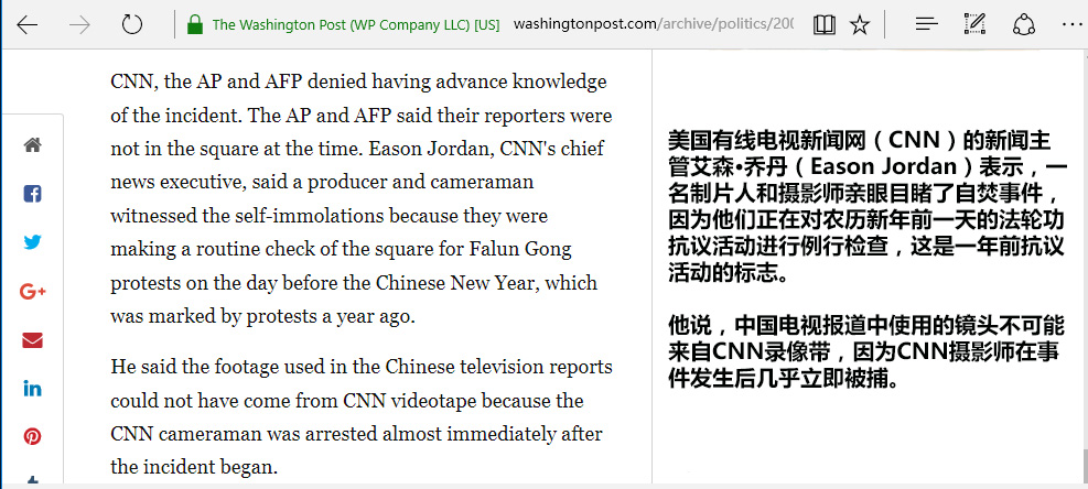 (《华盛顿邮报》二零零一年二月九日报道,CNN否认《焦点访谈》特写镜头来自CNN)
