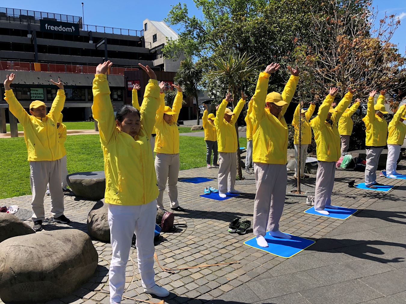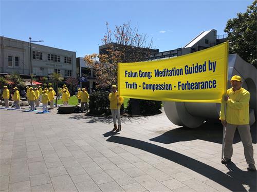 ![]() 图1~2:法轮功学员在新西兰奥克兰新市场商业街炼功弘法。 |