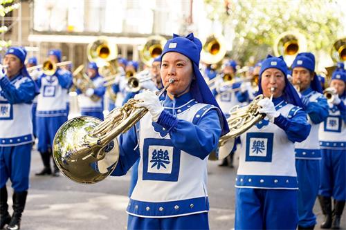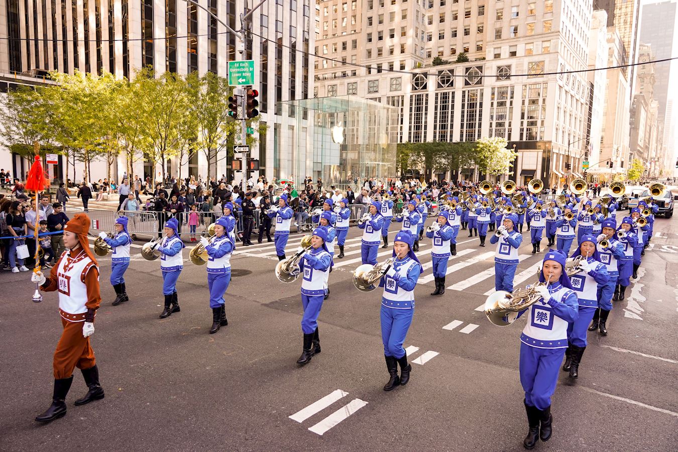 '图1~6:二零一九年十月十四日,由法轮功学员组成的纽约天国乐团参加了第七十五届纽约哥伦布日大游行。'