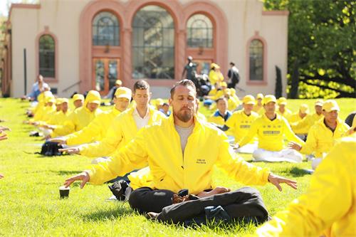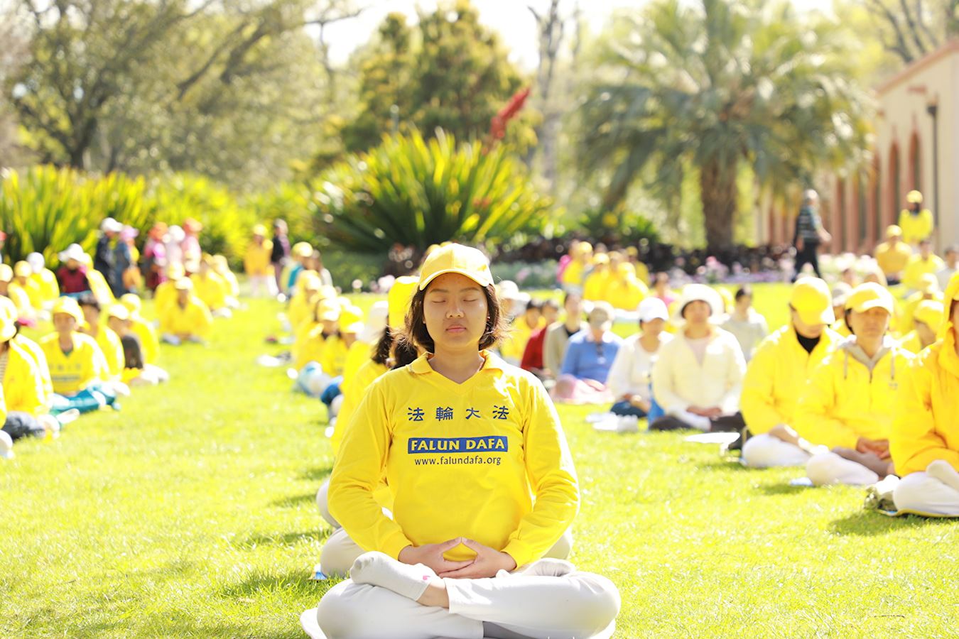 ![]() 图5:昆士兰州中医师、法轮功学员戴女士(前)在澳洲年度法会期间参加集体炼功。 |