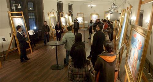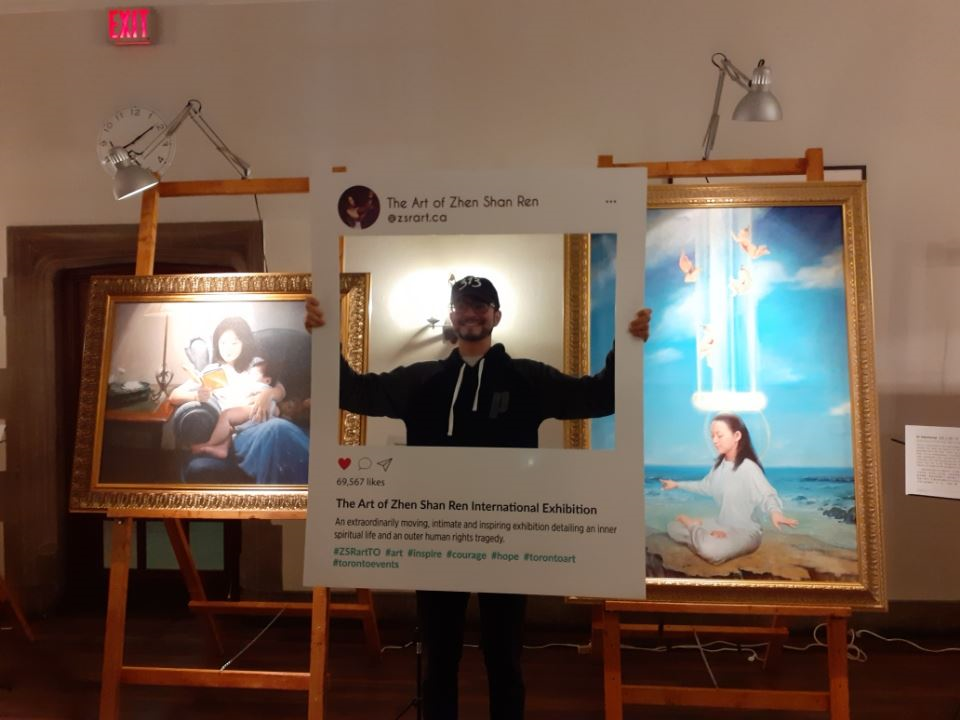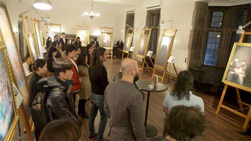在多伦多大学读大学一年级的艾米莉(Emily),当讲解员给她讲解时,她泪如雨下,询问才得知她小时候学过法轮功,父母和奶奶都修炼,后来父母遭到迫害,她也就没能坚持修炼了。她说:“画展让我找回了从前的美好。我终于找到你们了!”她第二天就参加了多伦多法轮功青年法轮功学员的学法交流。