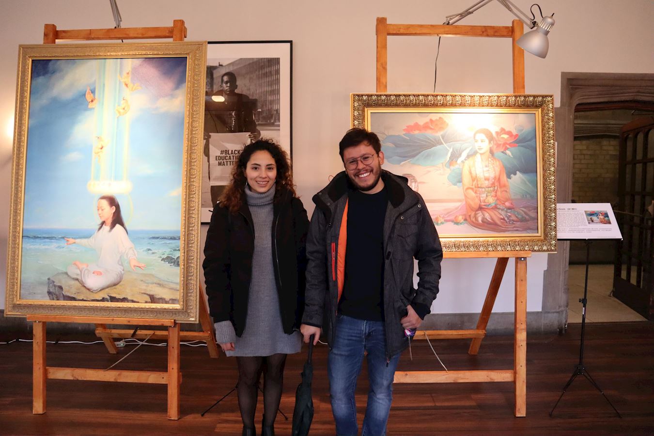 观赏画展的过程中他们了解了法轮功真相,克里斯特感谢道:“谢谢你们让我大开眼界,遇见法轮功是我的荣幸。我回去一定看书修炼。”