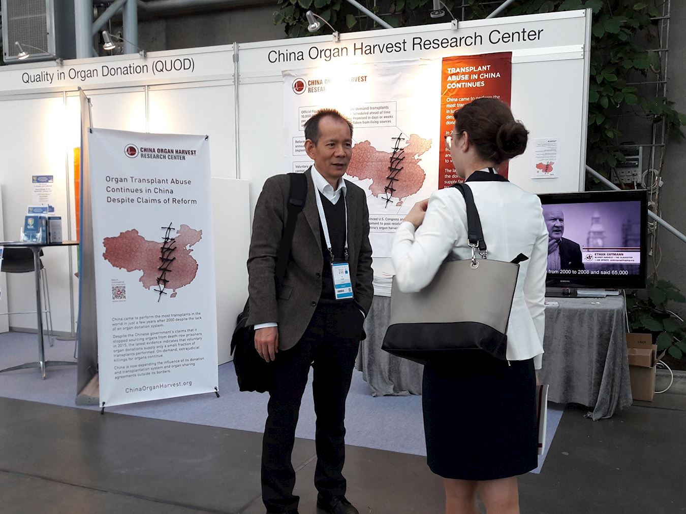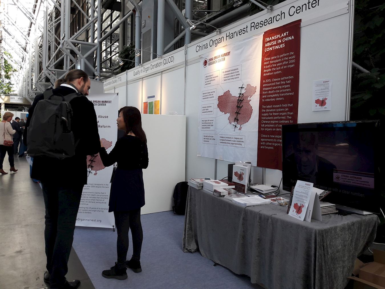 大会还举办了与移植领域相关的展览。专门调查和介绍中国器官移植滥用的研究机构“中国(中共)器官摘取研究中心”(China Organ Harvest Reserch Center- COHRC)也作为43个参展单位之一,受邀在大会内部设立专门展位,向与会者提供相关资料。