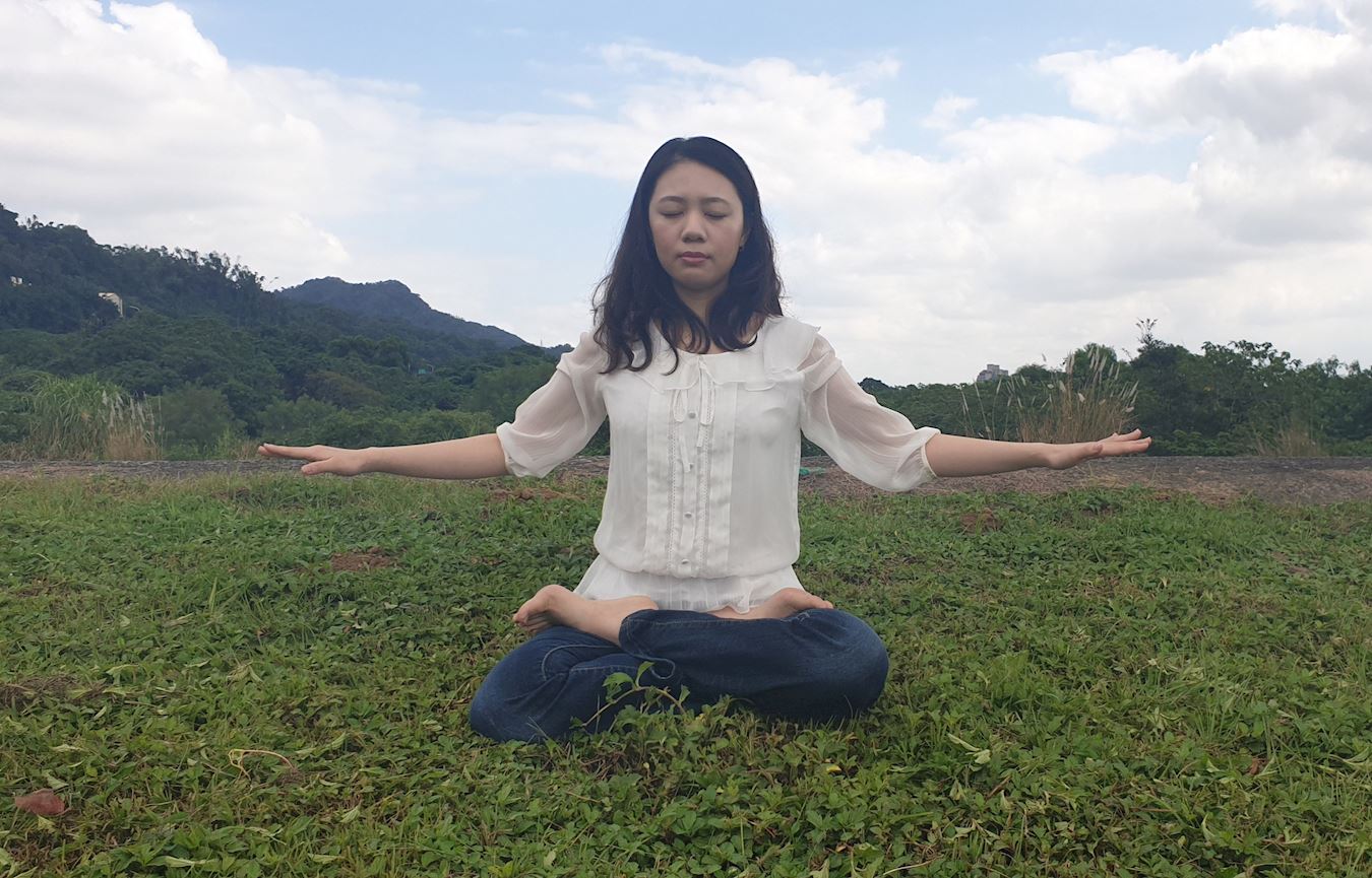 ![]() 图:郑予慈在炼功时感受到强大的能量在手中流转。 |