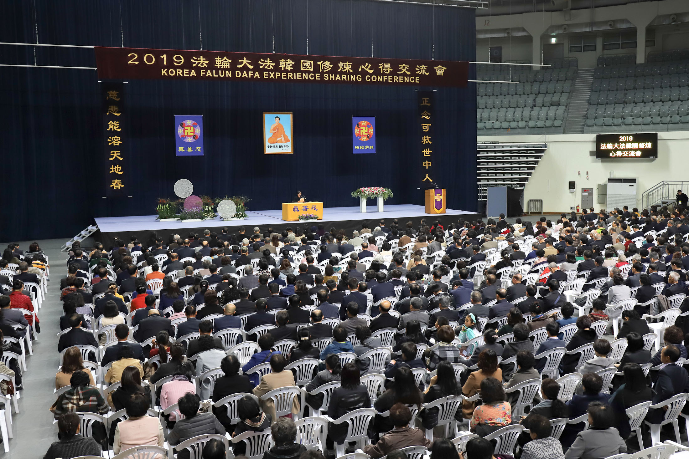 ![]() 图1~3:二零一九年十一月十日,来自韩国各地的约一千一百名法轮功学员在首尔中心的奖忠体育馆召开了“二零一九法轮大法韩国修炼心得交流会”。 |