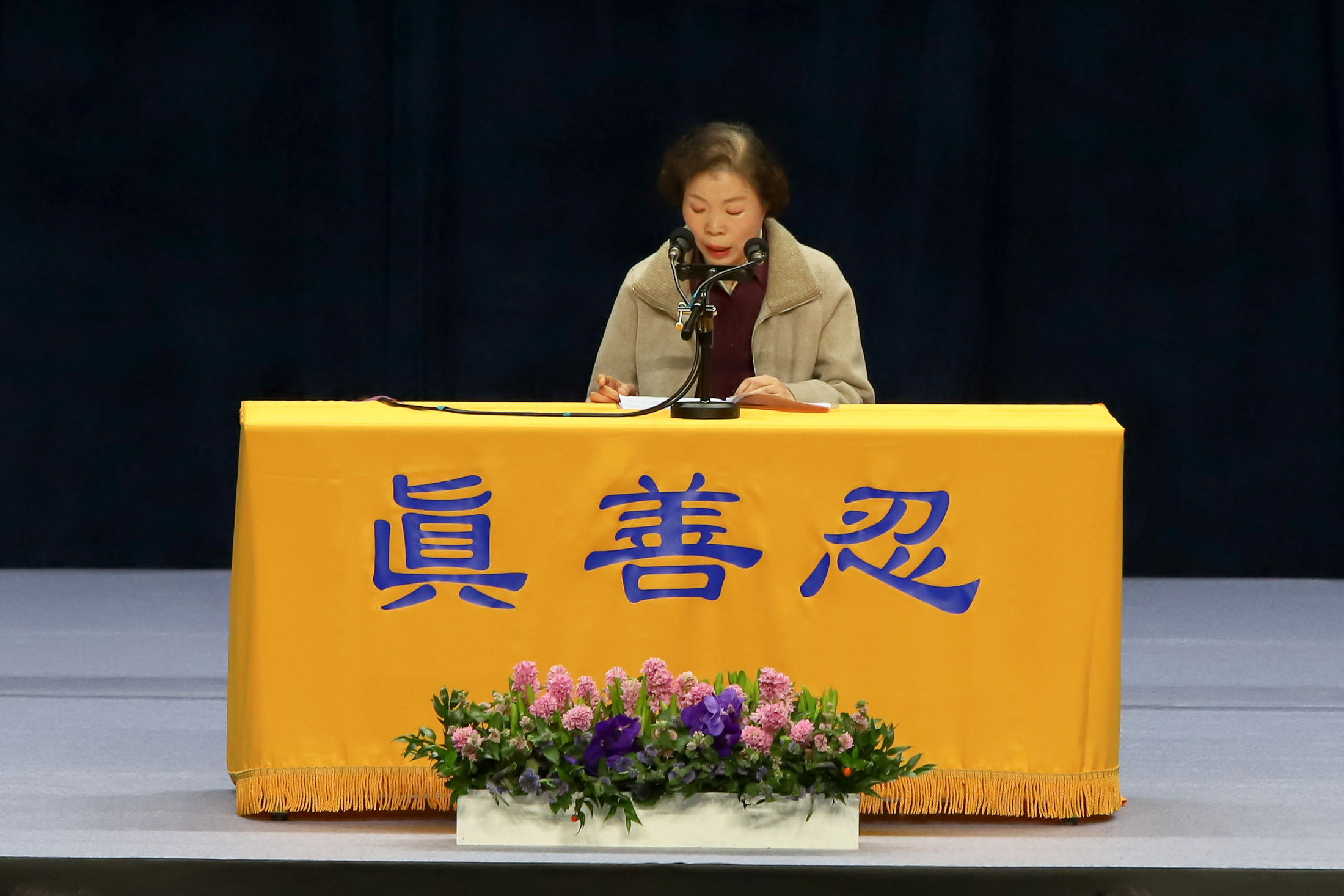 郑贤珍来自庆尚北道荣州,在父母的带动下走入修炼,她在交流中讲述了在日常生活中,如何以“真、善、忍”为原则要求自己,处理孩子与老师关系的经历。