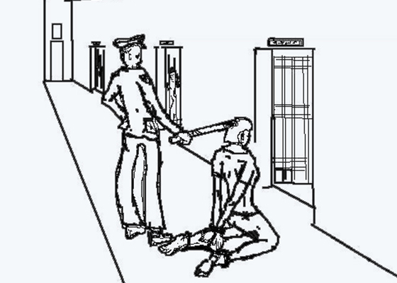 ![]() 中共酷刑示意图:背铐、电击、棒打、踩踢 |