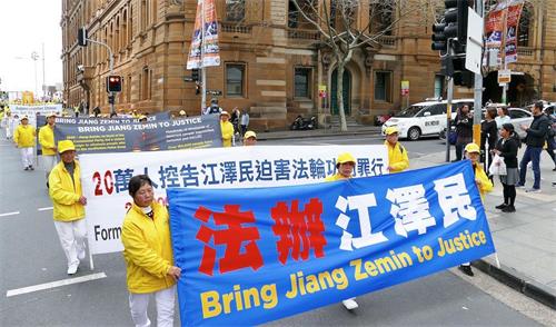 ![]() 图1~2:多年来,在全澳各地举行的游行等反迫害活动中,要求“法办江泽民”是法轮功学员的主要诉求之一。图为二零一八年九月七日在悉尼市中心举行的大游行中,学员展示“法办江泽民”和“全球控告迫害元凶江泽民”的横幅。 |