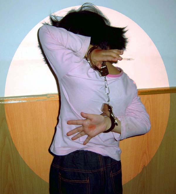![]() 中共酷刑示意图:手脚连铐 |