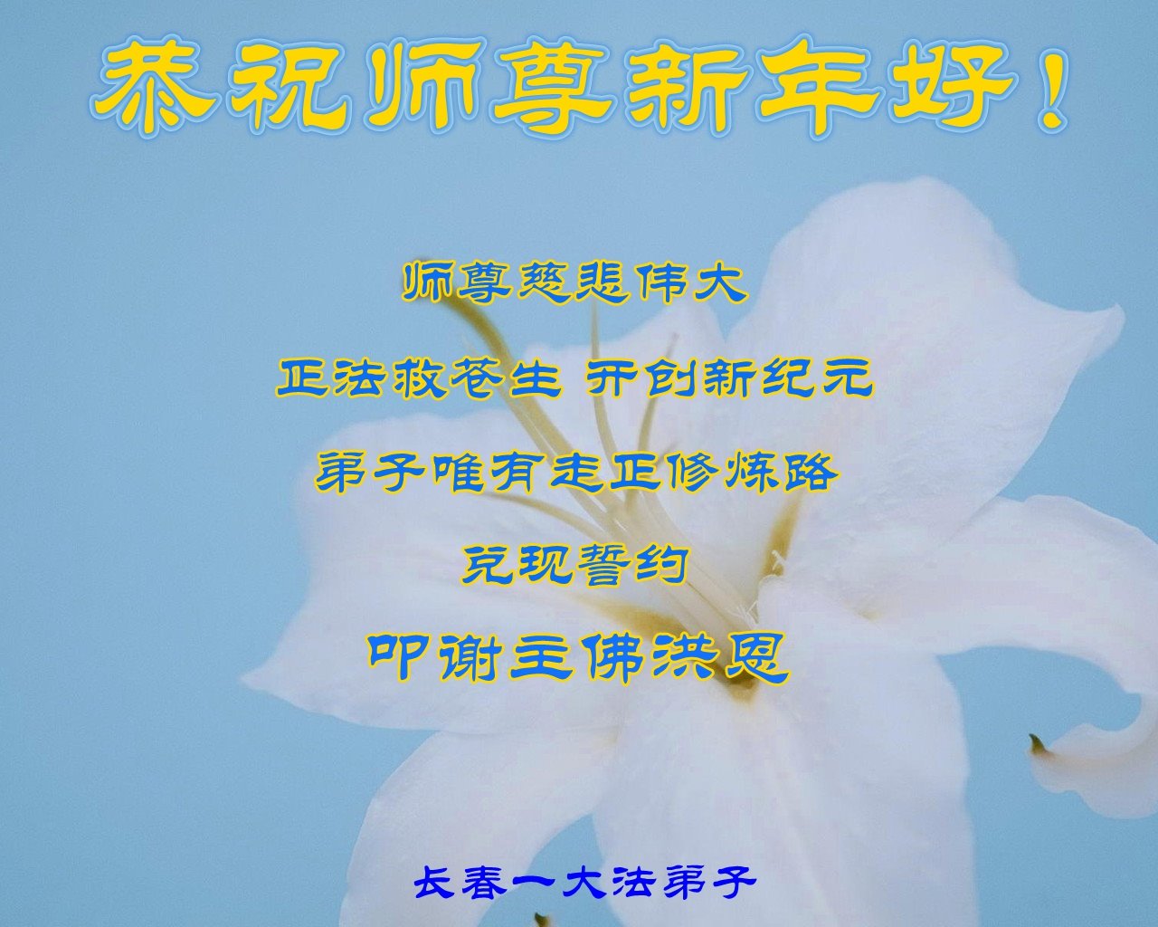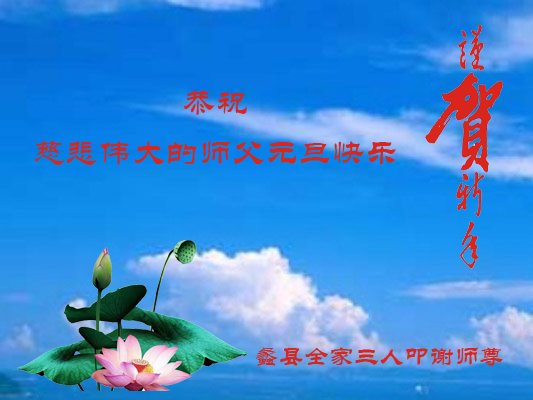 值此新年到来之际,我请大法弟子代我和我们全家人由衷的敬谢大法师父的恩德,祝愿大师新年快乐!