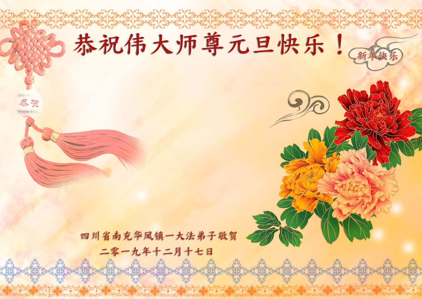<英文版: http://en.minghui.org/html/articles/2019/12/31/181599.html>乡村大法弟子恭祝师尊新年好(22条)