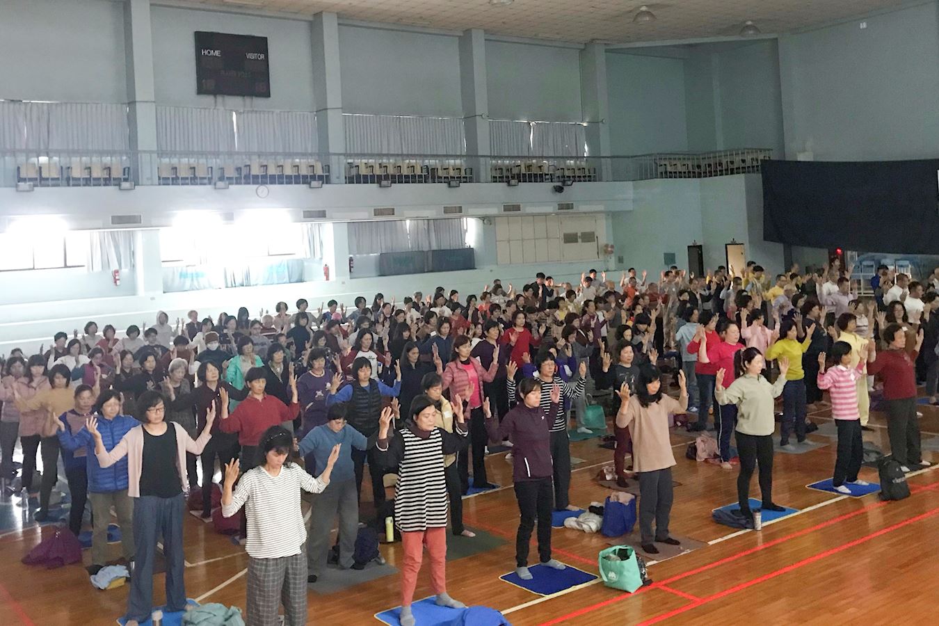 图3:二零一九年十二月二十九日清晨,高雄部份法轮功学员于高雄仁武区中华电信学院活动中心集体炼功。