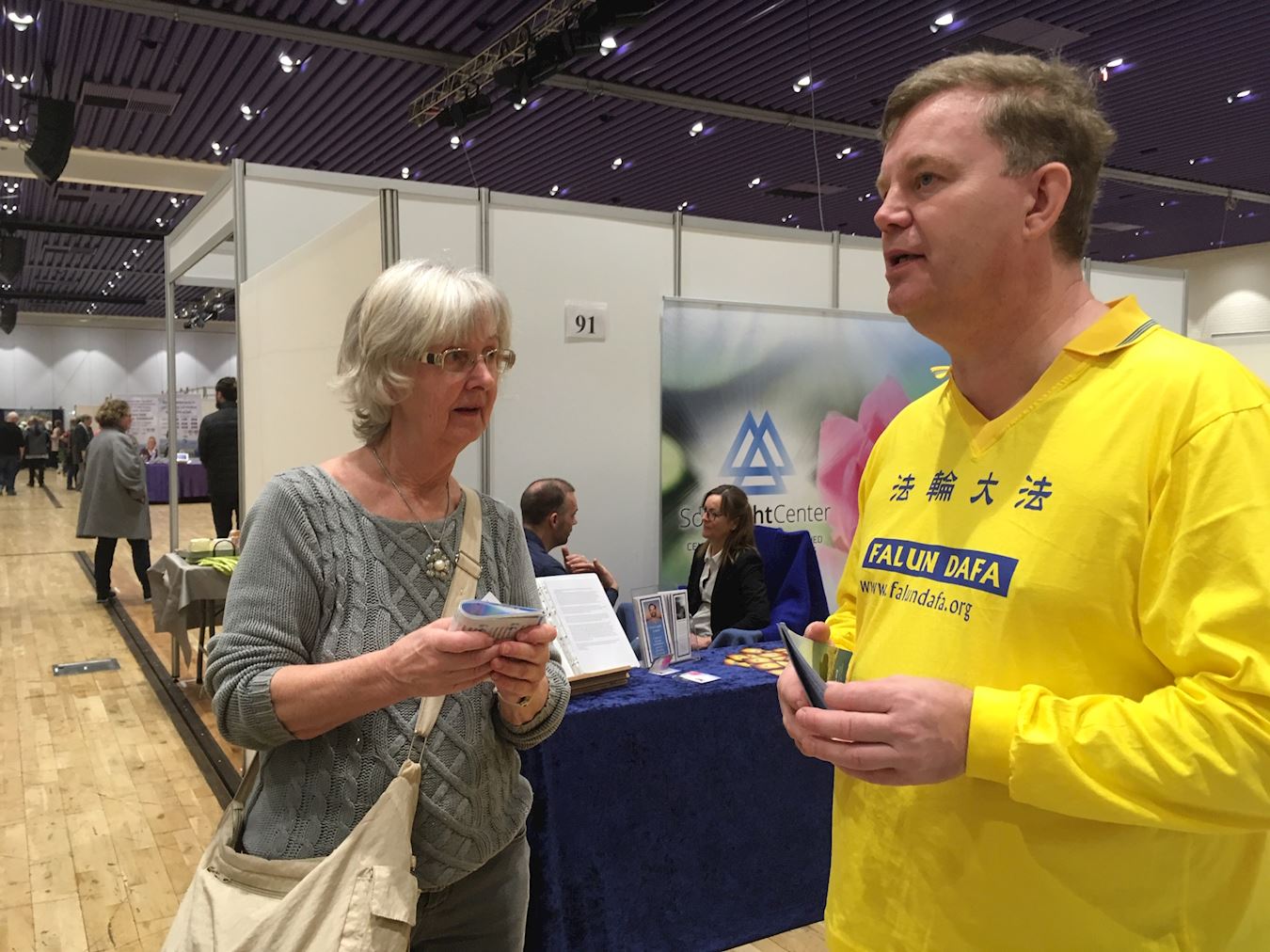 【明慧网二零一九年二月十九日】(明慧记者舒慧丹麦报道)二零一九年二月十六日到十七日,在丹麦第三大城市奥登赛举办健康博览会。奥登赛因是著名童话故事作家安徒生的故乡而闻名。丹麦部份法轮功学员再次参加了这里的博览会。为期两天的活动,有不少民众了解到法轮功是一种来自中国的古老修炼,教人向善,是祛病健身的好功法。有的人被纯净的能量场所吸引当场学功。