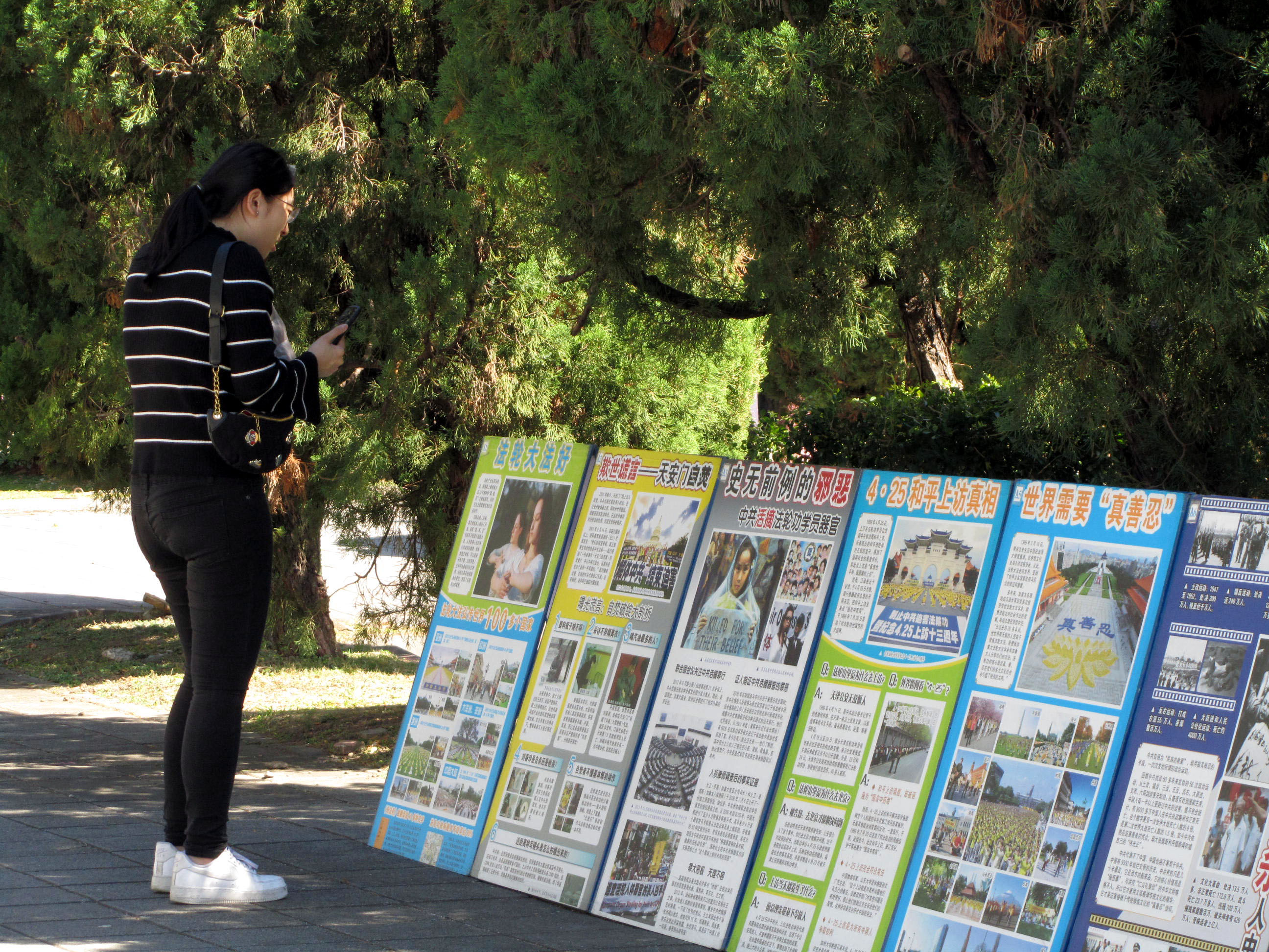 这里是台湾法轮功学员于二零零二年第一个建立的真相点,建点的学员表示,刚开始不太顺利,因为院方不理解,为什么每天都有法轮功学员举着横幅、拿着展板出现在故宫广场,驻警也会阻挡学员。经过努力不懈地讲真相,以及院方对学员的观察,台北故宫高层了解了法轮功学员无私的付出,是为那些因为信仰真善忍,遭受中共残酷迫害、却无法发声的中国百姓。此后,故宫方面给予法轮功学员最大的支持。
