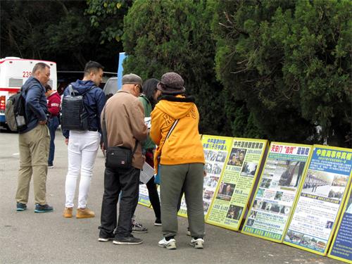 ![]() 图7~8:大陆游客观看展板内容并聆听法轮功学员讲真相。 |