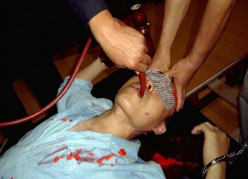 李文波一次一次往外冲,都被恶警和恶徒们一次一次的拦截后丢进去。之后,恶徒用手推车把已不会动的李文波推到砖场晒砖的坯沟上强制坐“过山车”,然后用水把他全身冲湿,让他在砖场的坯沟上吹北风。