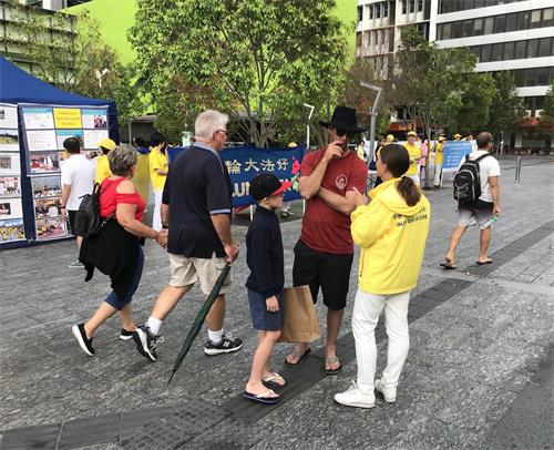 ![]() 图1:澳洲昆士兰法轮功学员在布里斯本广场集体炼功 |