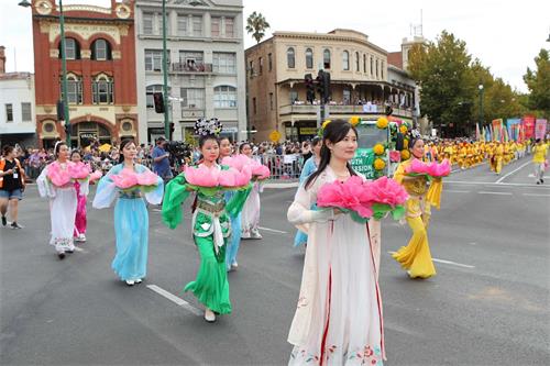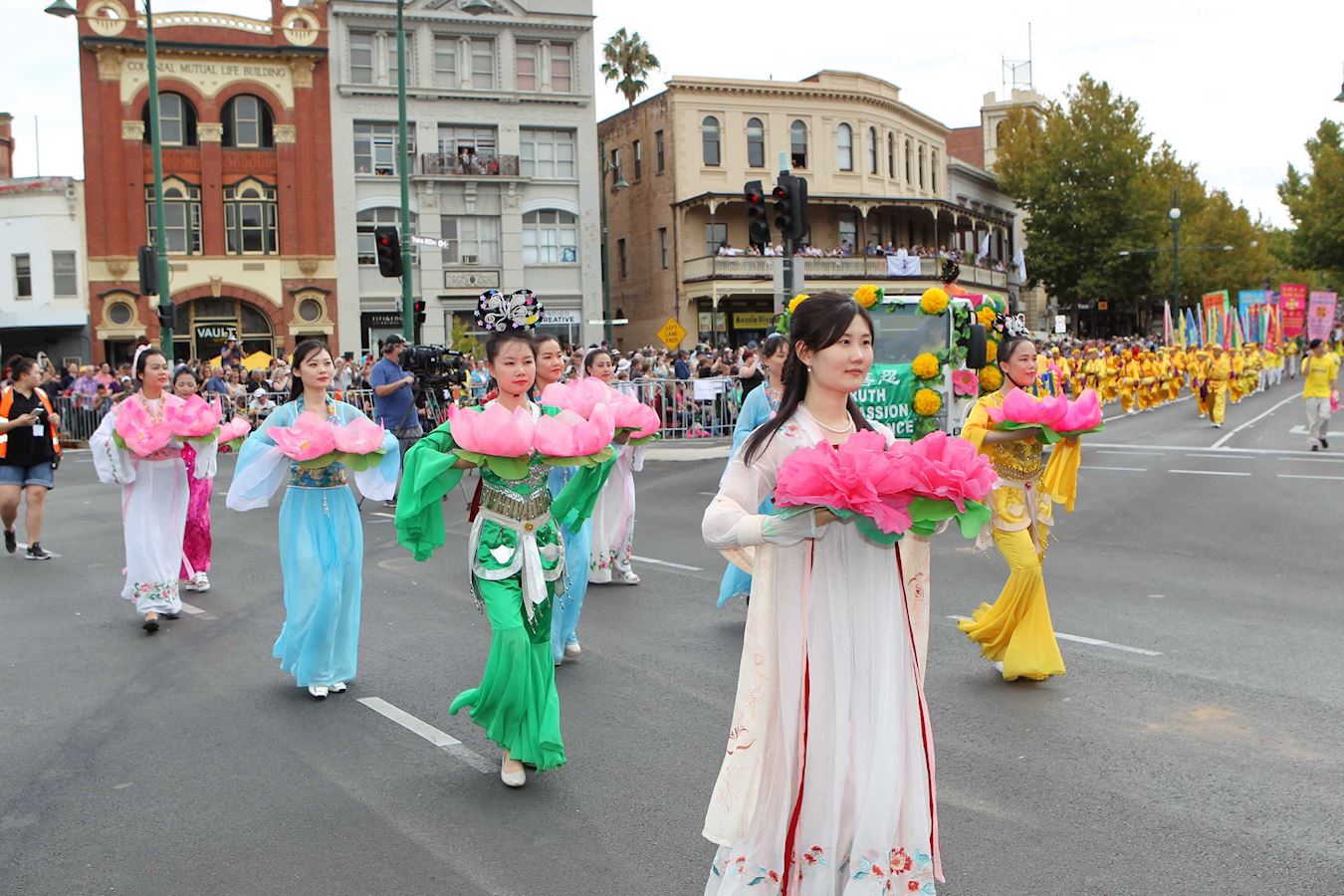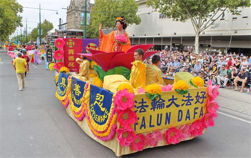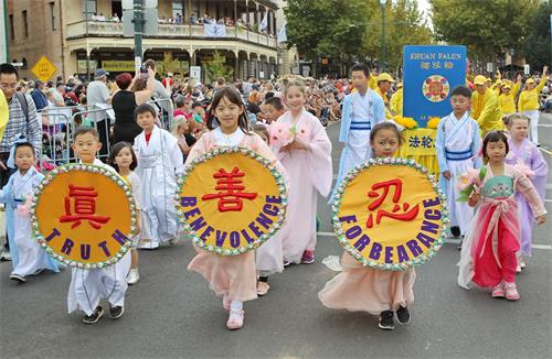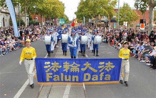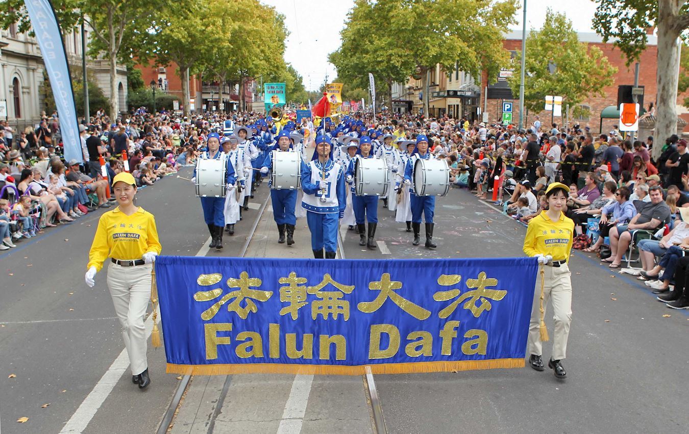 【明慧网二零一九年四月二十四日】(明慧澳洲墨尔本记者站报道)二零一九年四月二十一日,一年一度澳洲最古老复活节盛装大游行(Easter Gala Parade),在维多利亚州历史上的淘金重镇本迪戈(Bendigo)隆重登场。墨尔本法轮功学员再次受邀参加,包括天国乐团在内的不同族裔的学员,以优美祥和、明丽的表演,将大法“真、善、忍”的福音带给现场八万观众。