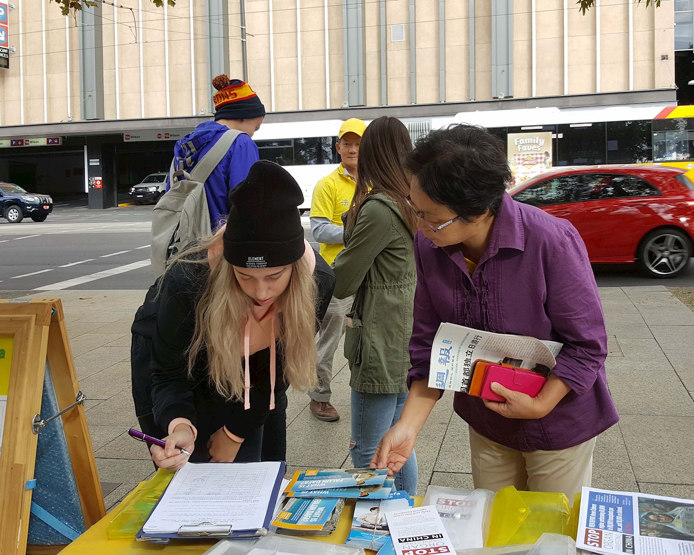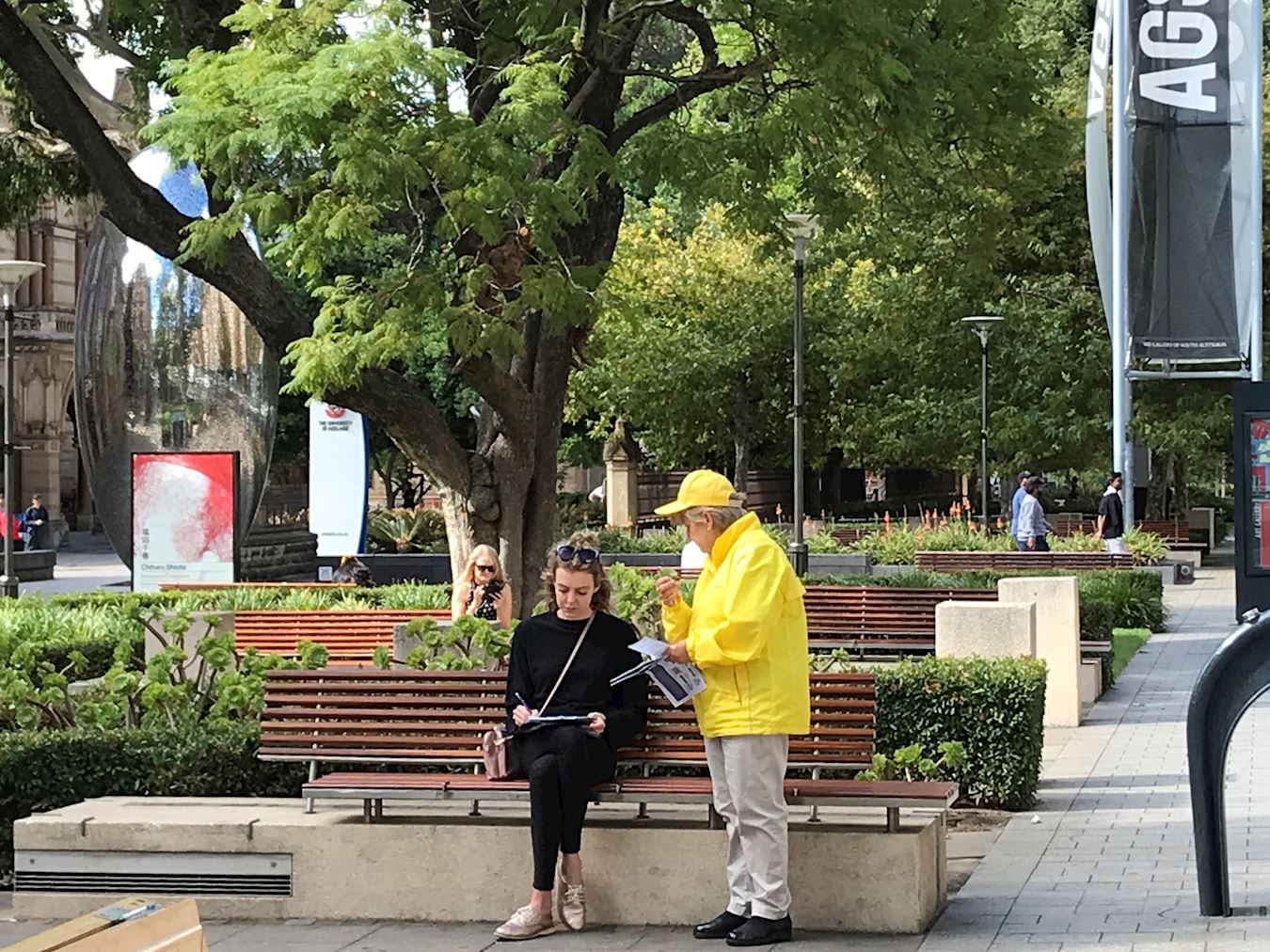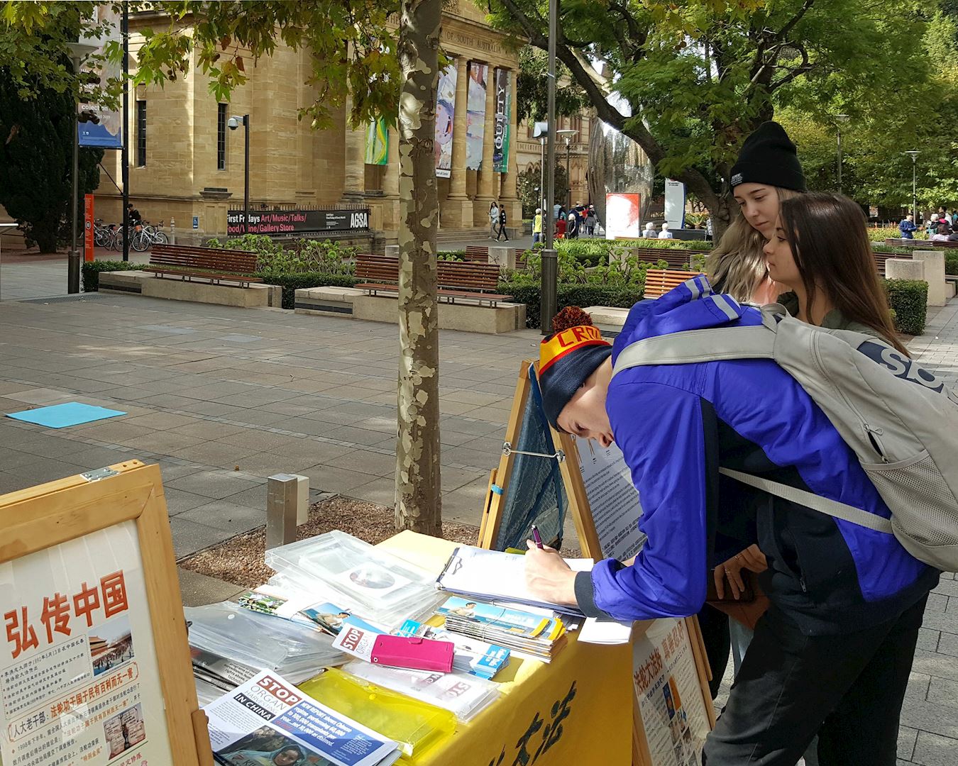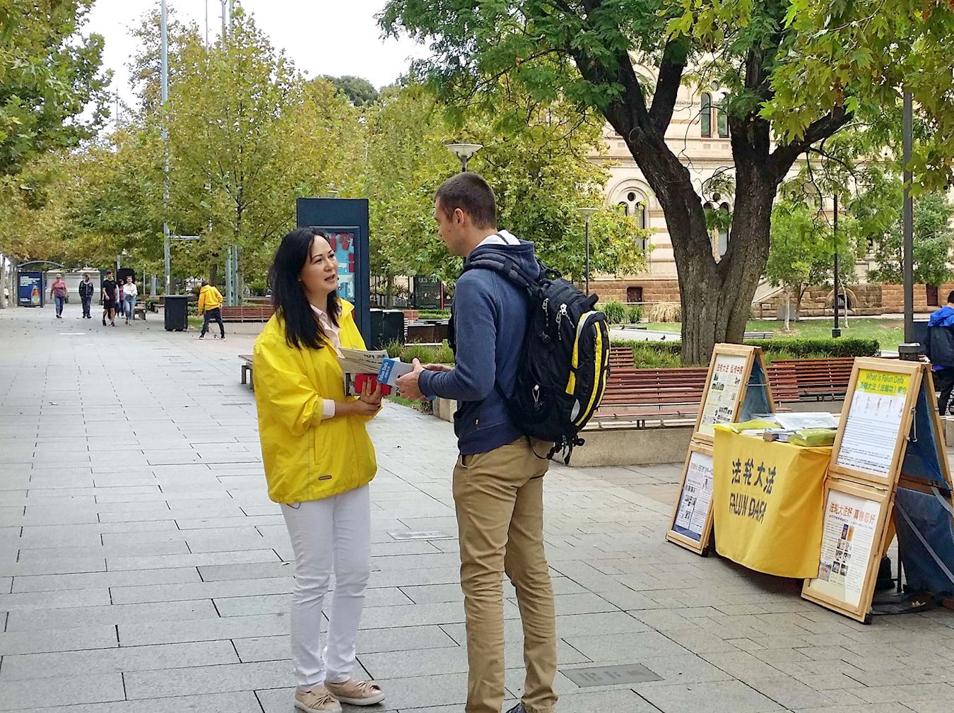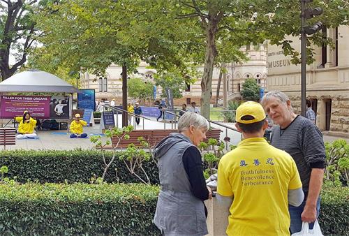 当天的活动地点距离阿德莱德大学很近,一些中国留学生及其家长来来往往,他们经过时放慢脚步关注,观看展板和横幅,有人接过《明慧周报》,表示知道法轮功好,不支持中共对法轮功的打压。