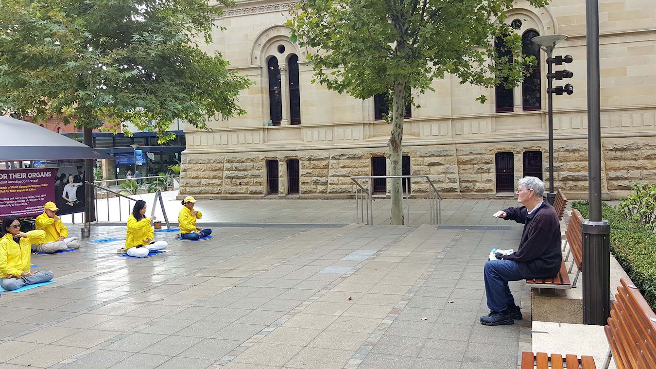 来自墨尔本的罗兰(Roland)要去参观南澳艺术馆经过真相点,他告诉学员自己喜爱练太极,说:“我也打坐,我相信这能够帮助人放松心情,舒压,我一定会很好地看这些资料,很有兴趣。”谈到中共活摘器官的罪行, 罗兰表示略有耳闻,他说:“真是不明白中共为什么要害怕这样和平的团体,要如此残酷打压?只能说它是毫无人性的异类。”