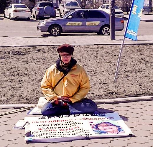 四月二十四日,在俄罗斯西伯利亚地区的伊尔库茨克市的中领馆前,法轮功学员为纪念“四二五”举办了抗议中共迫害的活动。学员手举展板呼吁立即停止迫害,要求中共释放曾在俄罗斯居住多年的,但是现在还被关在哈尔滨看守所已经七十岁高龄的法轮功学员,她正面临被非法判刑和关押。