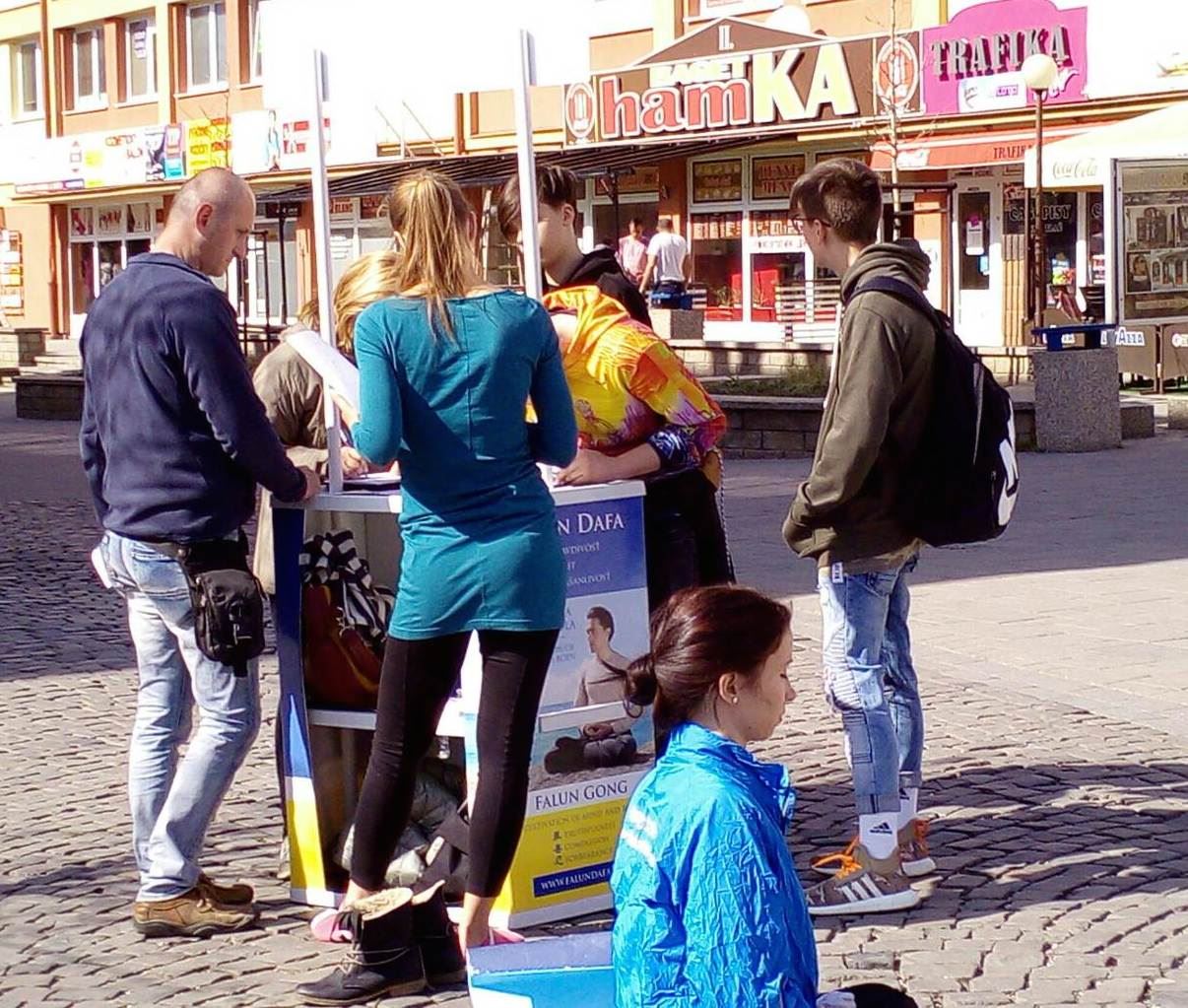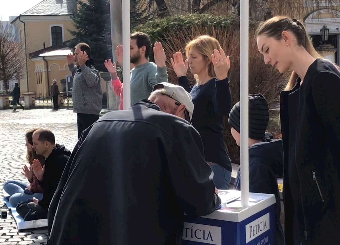 【明慧网二零一九年四月五日】三月三十日周六上午,斯洛伐克部份法轮功学员来到中西部城市托波尔恰尼(Topolčany)传播法轮功真相,学员们有的展示法轮功五套功法,有的散发法轮功真相传单,揭露近二十年来中共残酷迫害法轮功学员的事实,呼吁人们共同制止迫害,反对中共活摘法轮功学员器官。许多民众了解真相后,马上在请愿书上签名声援法轮功学员,也有的表示想学炼法轮功。