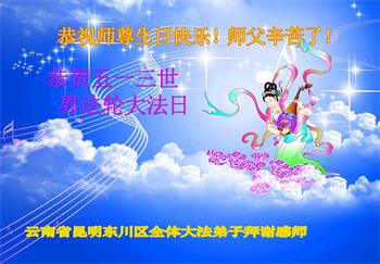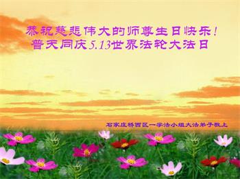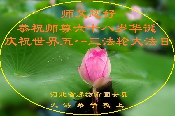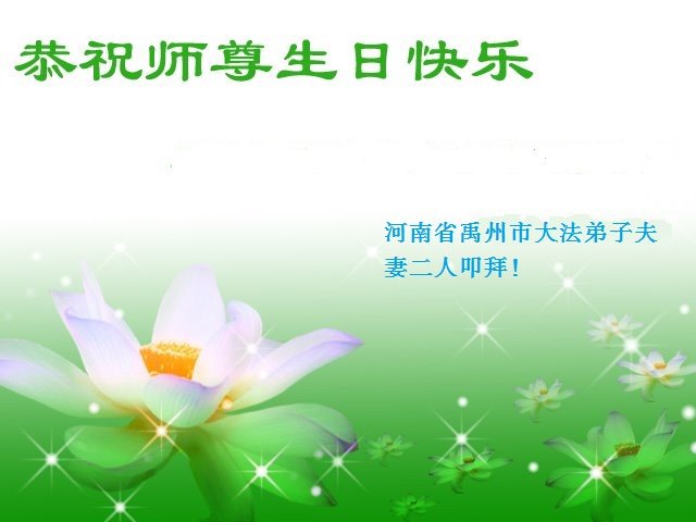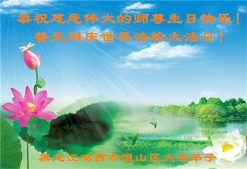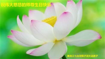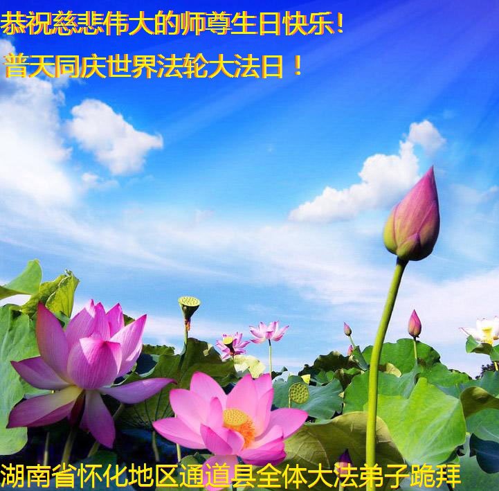 我是一名刚开始学大法的新学员,我怀着崇敬的心情,恭祝师父生日快乐!恭贺世界法轮大法日!