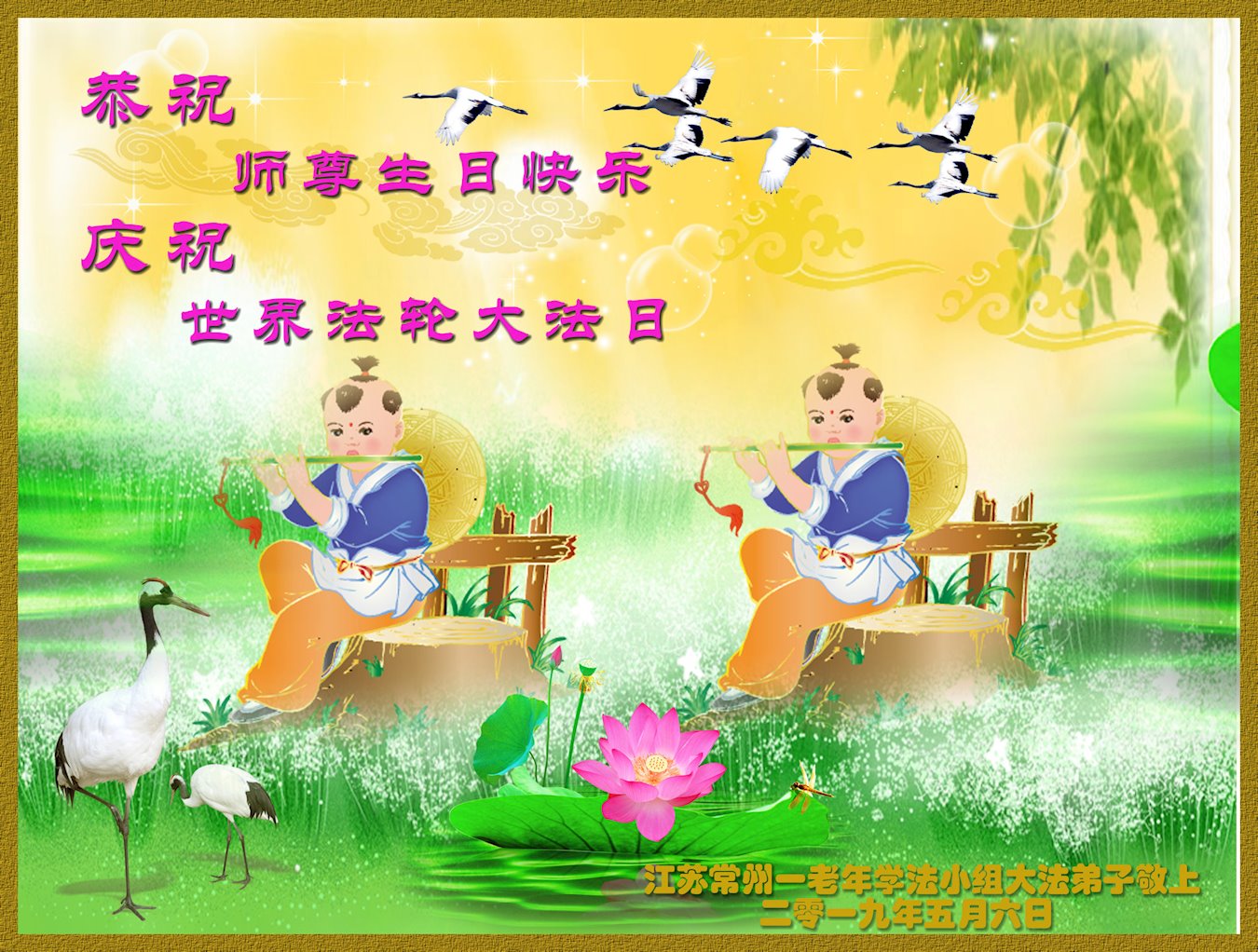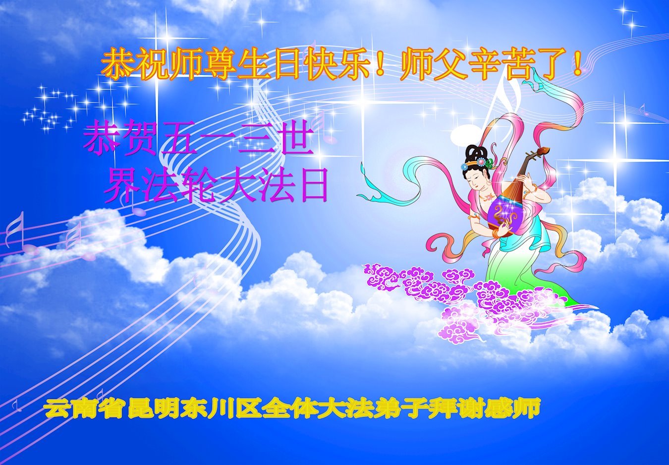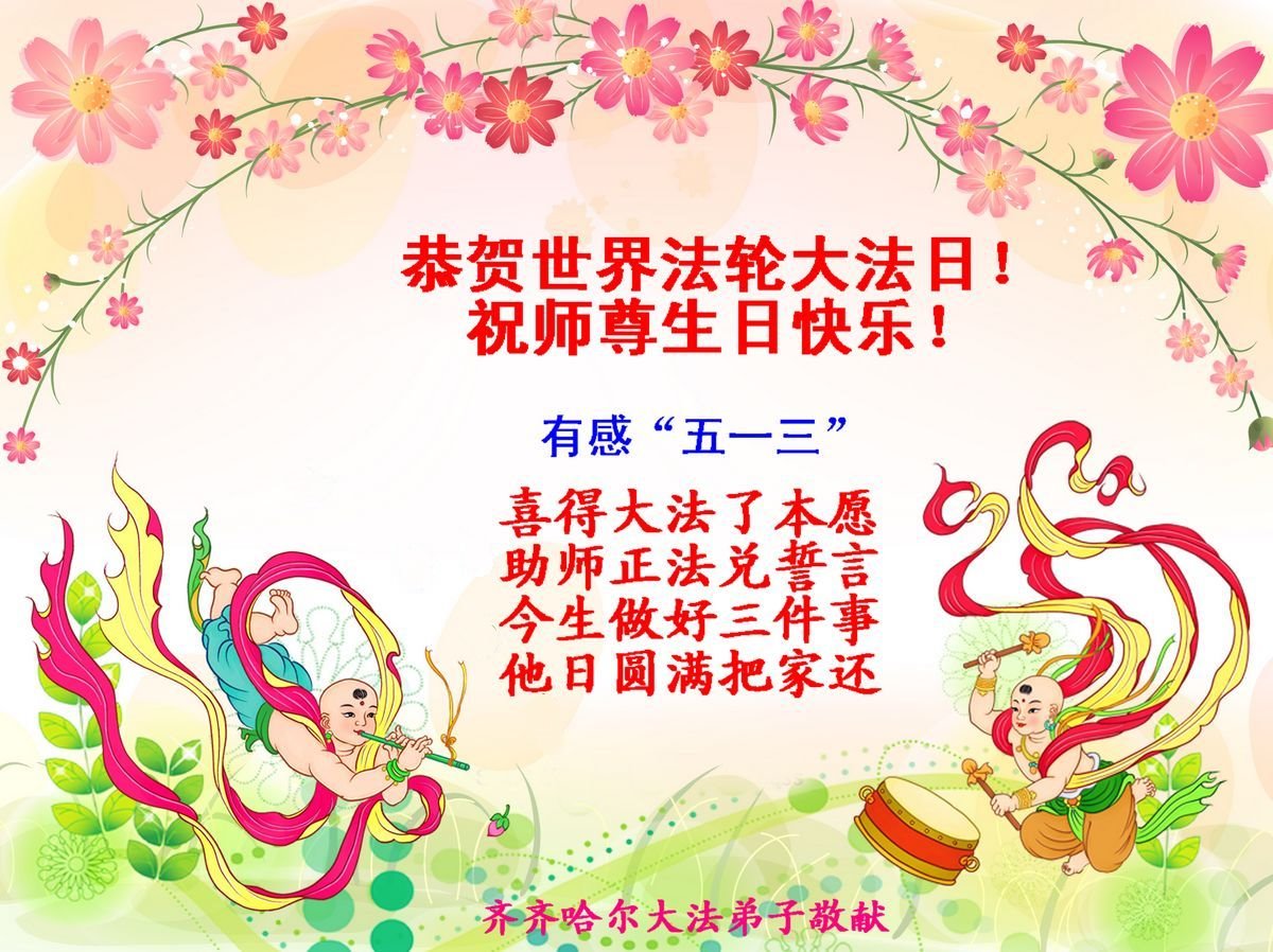 喜迎世界法轮大法日的到来,恭祝师父节日快乐!