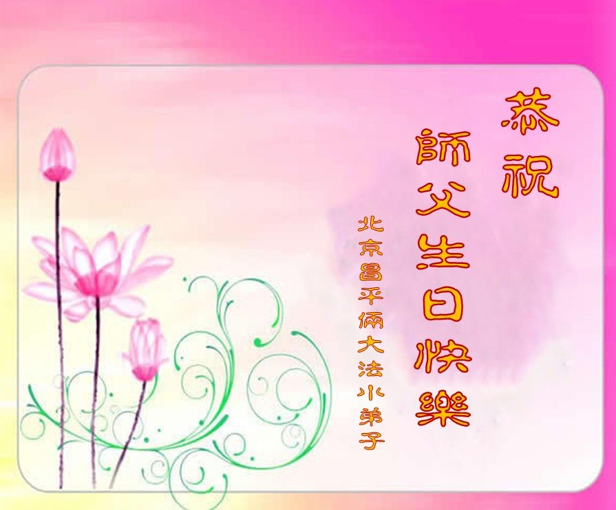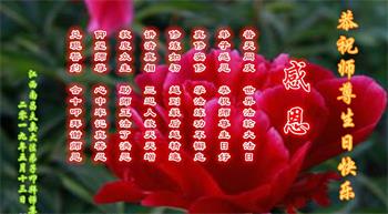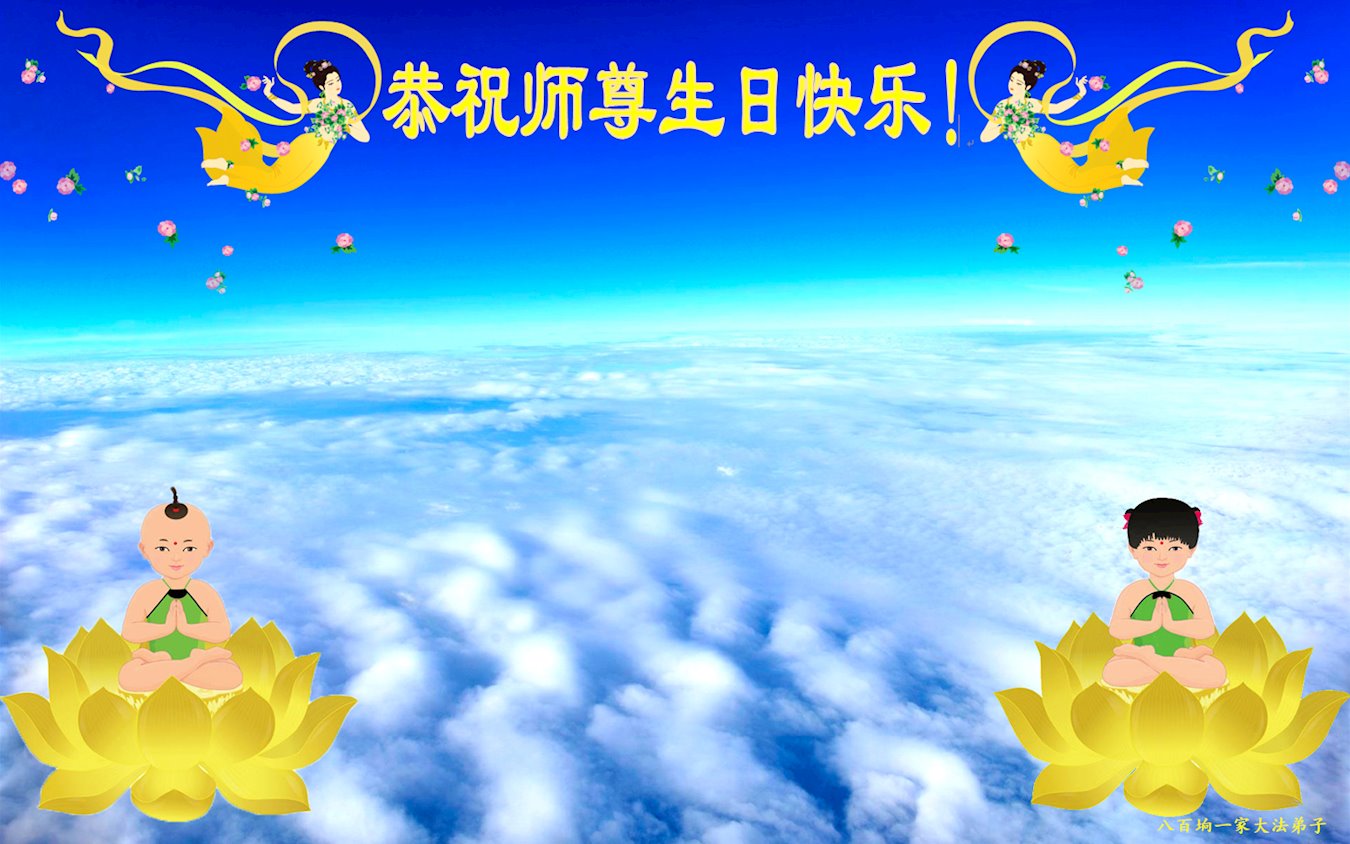 我是个新学员,修的不精進,让师尊操心了。在今后的修炼路上,我会听师尊话,用心做好三件事。师尊,您为弟子们和众生们操碎了心,弟子感恩师尊的慈悲救度!弟子叩拜师尊!祝师尊生日快乐!