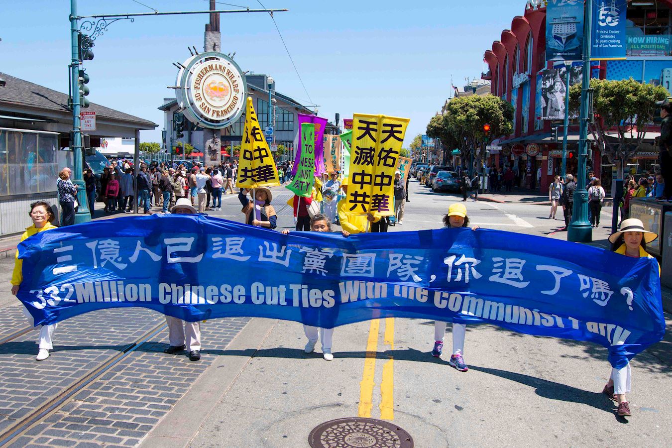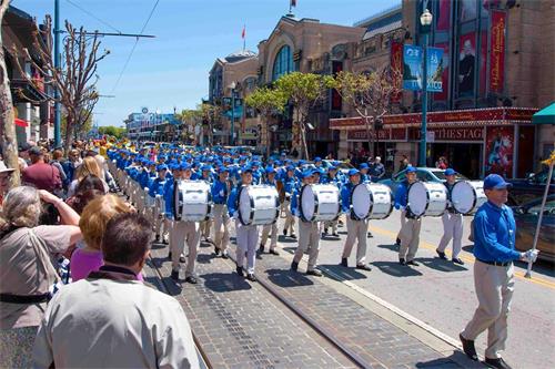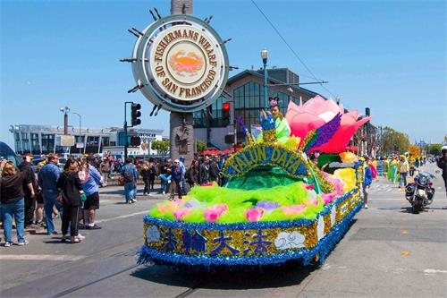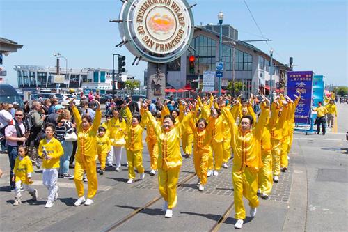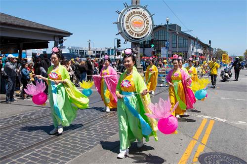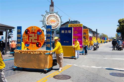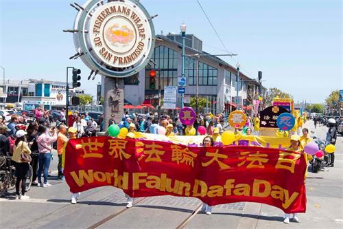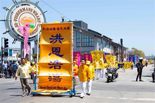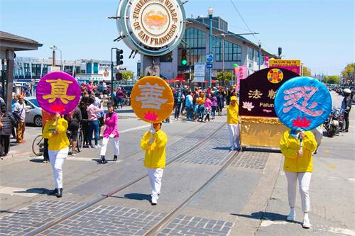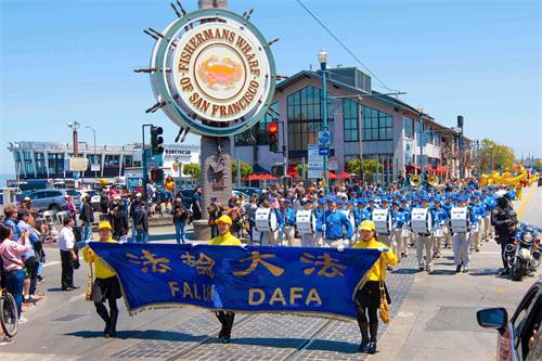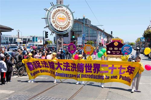 ![]() 图1~18:旧金山法轮功学员在渔人码头旅游景点游行,恭祝师父华诞,庆祝“世界法轮大法日”。 |