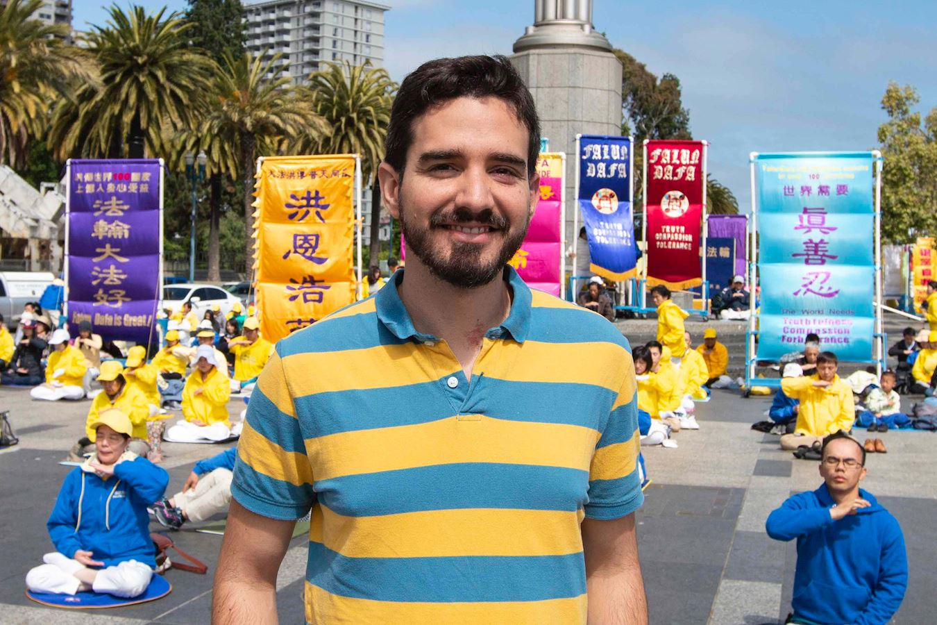 亚历杭德罗·马查多(Alejandro Machado)是委内瑞拉电脑工程师,也是人权活动家。之前,他没有听说过法轮功。当天他看到法轮功学员在渡轮大厦前的活动,让他感到,法轮功学员在市中心的活动“非常祥和,色彩鲜艳,非常美”。