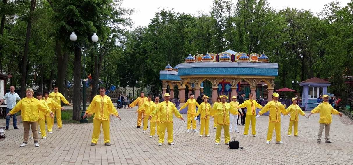 五月十一日,哈尔科夫市中心文化主题公园举行文艺联欢会。法轮功学员受邀参加,同时与世人同庆五·一三世界法轮大法日。在公园最大的舞台上,法轮功学员们表演腰鼓与舞蹈,并向世人介绍法轮功以及中国文化带给世界的改变。法轮功学员卡莉娜以热忱的心告诉市民,法轮功倡导的“真善忍”是中国传统文化中最好的精华。
