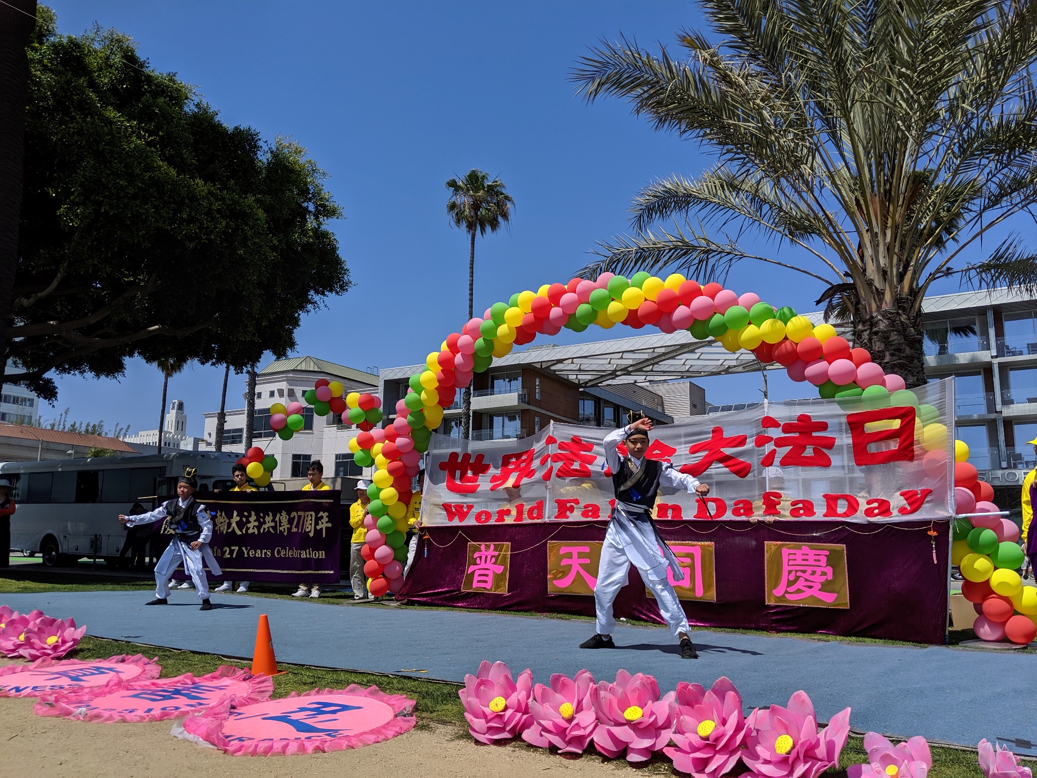 当天,洛杉矶部分法轮功学员在圣莫妮卡码头公园欢庆第二十届“五一三世界法轮大法日”、法轮大法弘传二十七周年暨法轮功创始人李洪志师父六十八岁华诞。