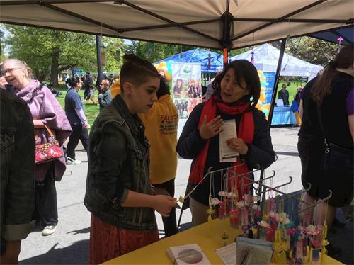 祖籍是广东的华裔詹尼弗女士,正在攻读教育学博士学位,她带着一位中国朋友来到大法展位。詹尼弗表示她每天自己打坐冥想,几个月前在网上看到大法的信息,不过她的这位中国朋友向她转述了中共对大法的污蔑宣传,詹尼弗今天就来展位问个究竟。对她提出的问题,学员一一解答,临别时,詹尼弗表示周日会来加入学员的户外炼功。学员在与她的中国朋友在交谈中,发现这个来自唐山的女孩尽管受了邪党的舆论灌输,但是她并不抵触大法,愿意和学员聊自己在生活中遇到的人或事。