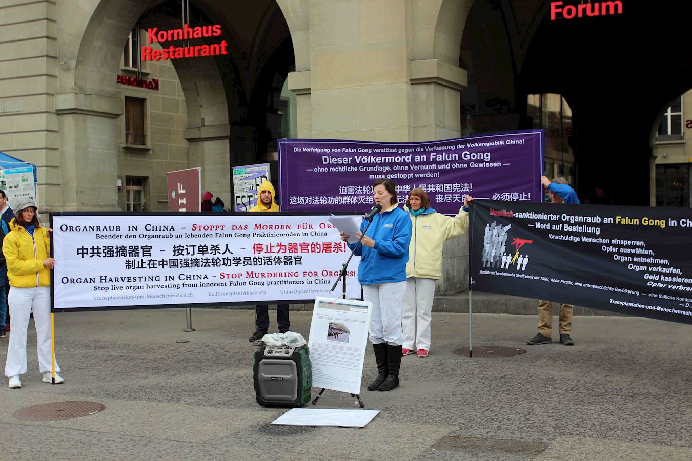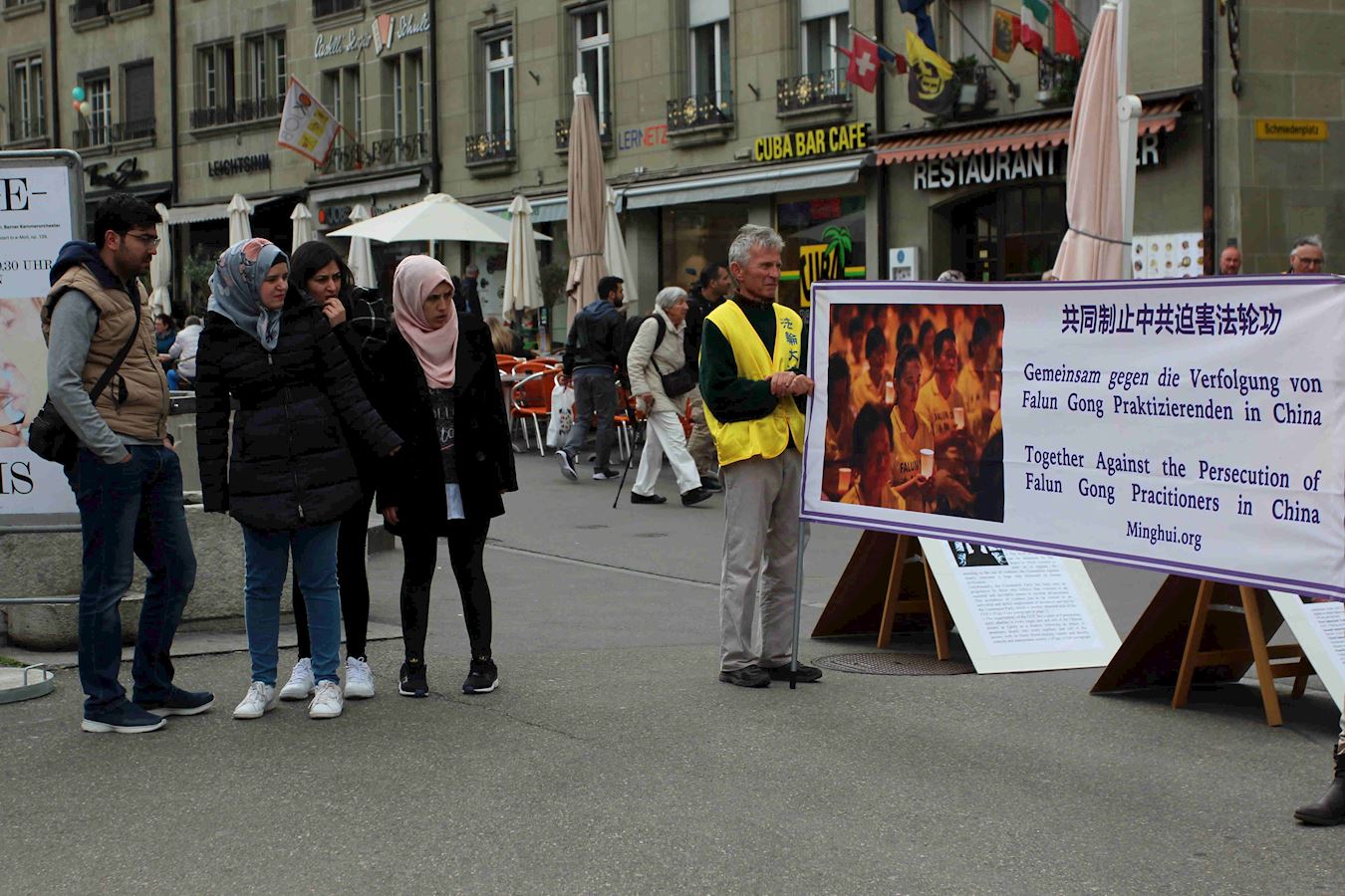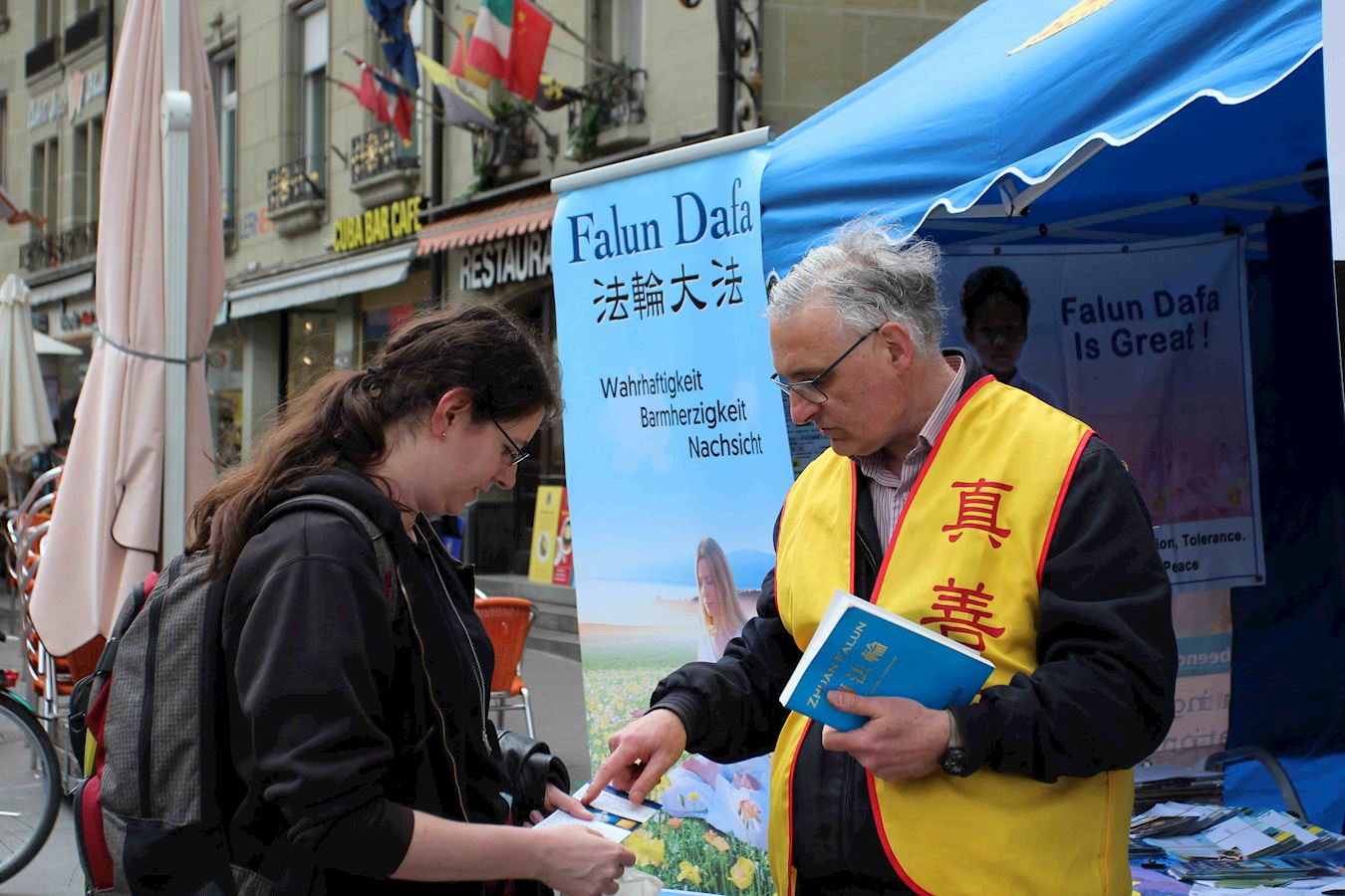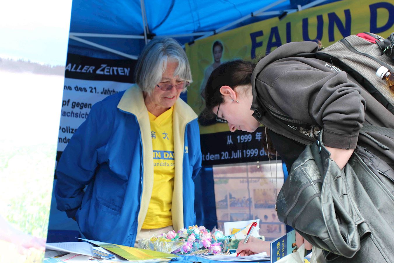 测量技师萨布丽娜(Sabrina)在听完学员详细的介绍后,签名要求制止中共迫害法轮功。她认为:“(迫害法轮功)这是一场灾难,就如同二战,如同当年基督徒被迫害一般,这种对正义群体的迫害在当今的社会根本就不应该发生。我觉得实在是太悲哀了,一个如此平和的群体,如此祥和的功法,但是却被(中共)政权迫害,但是我们在瑞士却得不到相关的讯息。怎么能对此听之任之,这实在是太糟糕了。”