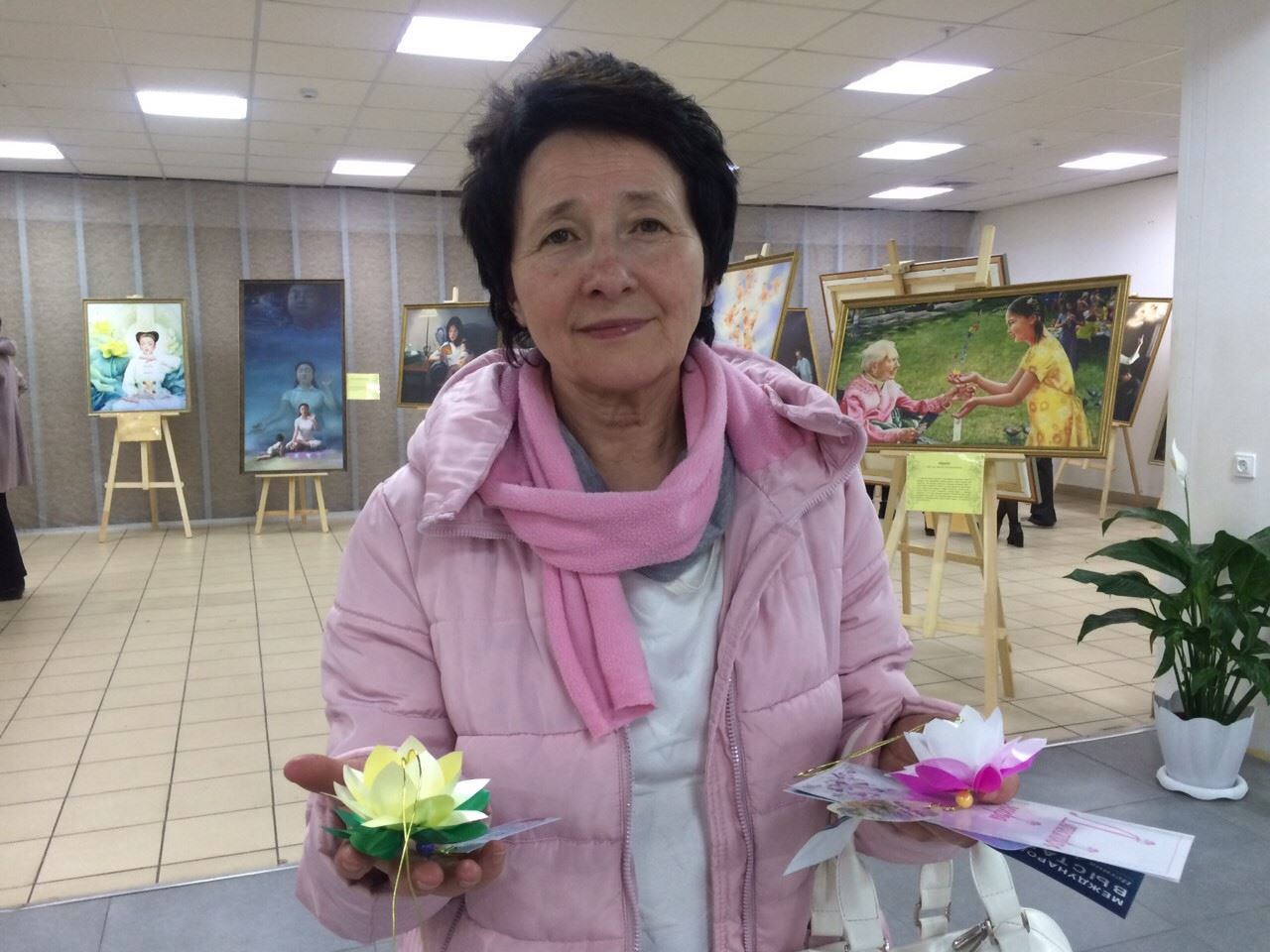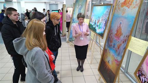 五十八岁的塔季扬娜·科兹洛娃(Tatyana Kozlova)女士非常感谢有机会来参观展会,观展后她说到:“感谢(画展表现的)崇高的思想、善良和美好的情感”。