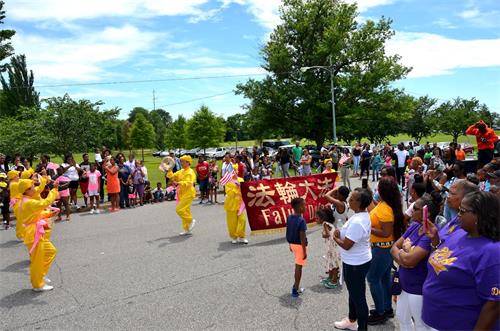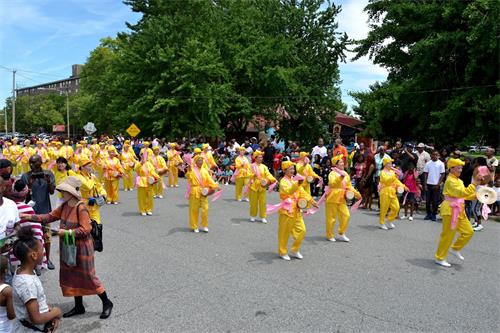 【明慧网二零一九年六月十七日】二零一九年六月十五日,美国宾州费城西郊的切斯特市(Chester)举行了“父亲节多元文化游行”,组织者称:当地各民间团体有约两千人参加。来自纽约、由法轮功学员组成的腰鼓队第一次受邀参加这个游行,受到民众和当地政府官员的好评。