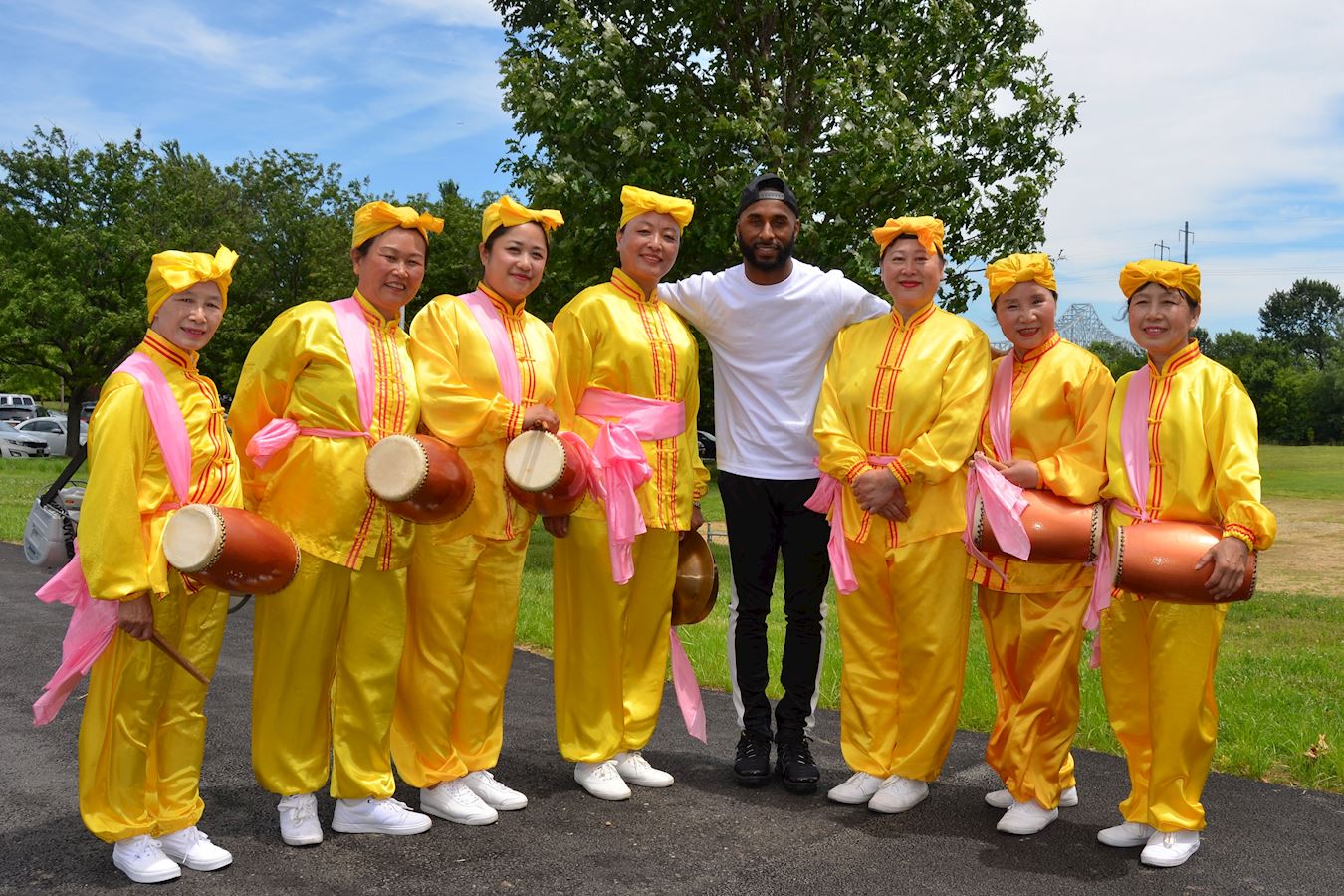 图7:切斯特市副市长兼市议员摩根(William Morgan)与部份法轮功腰鼓队员合影。