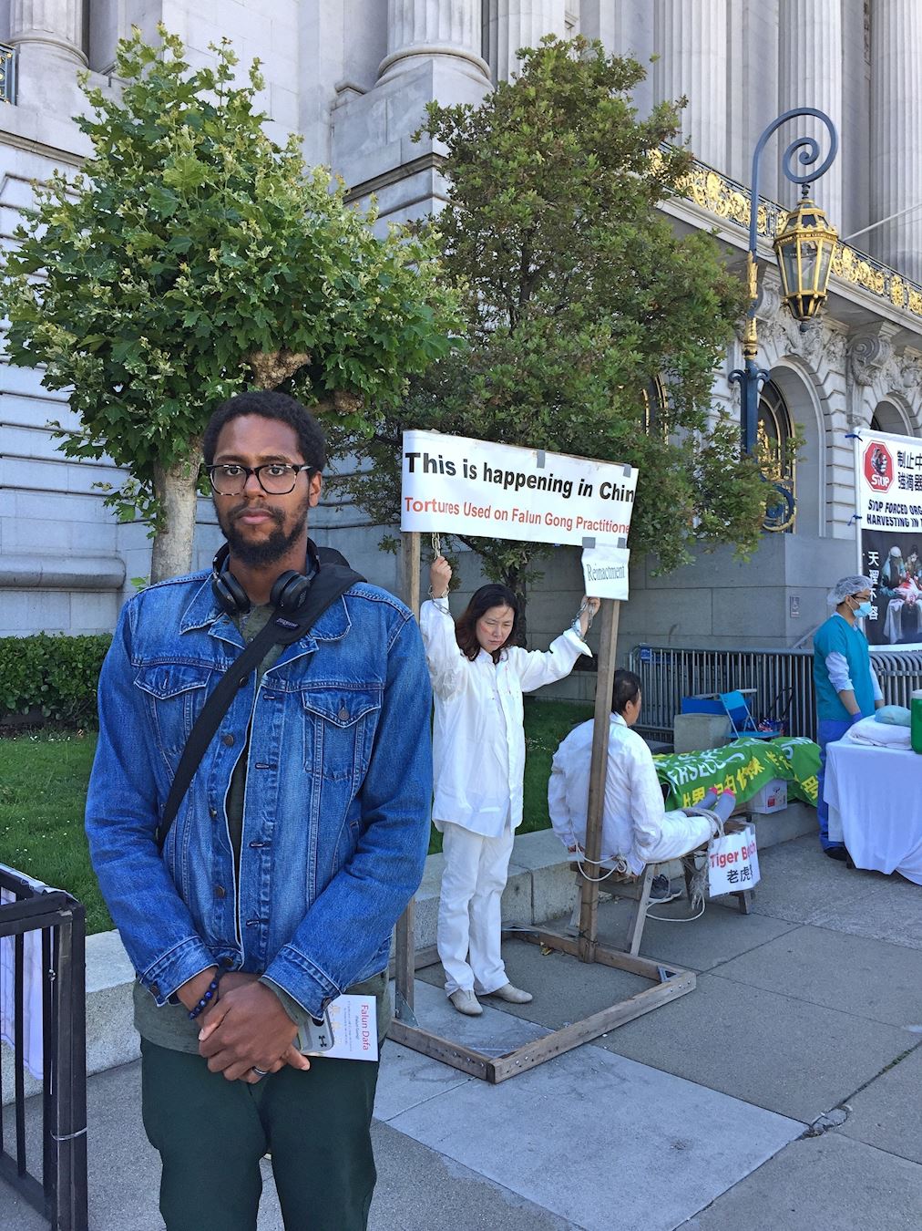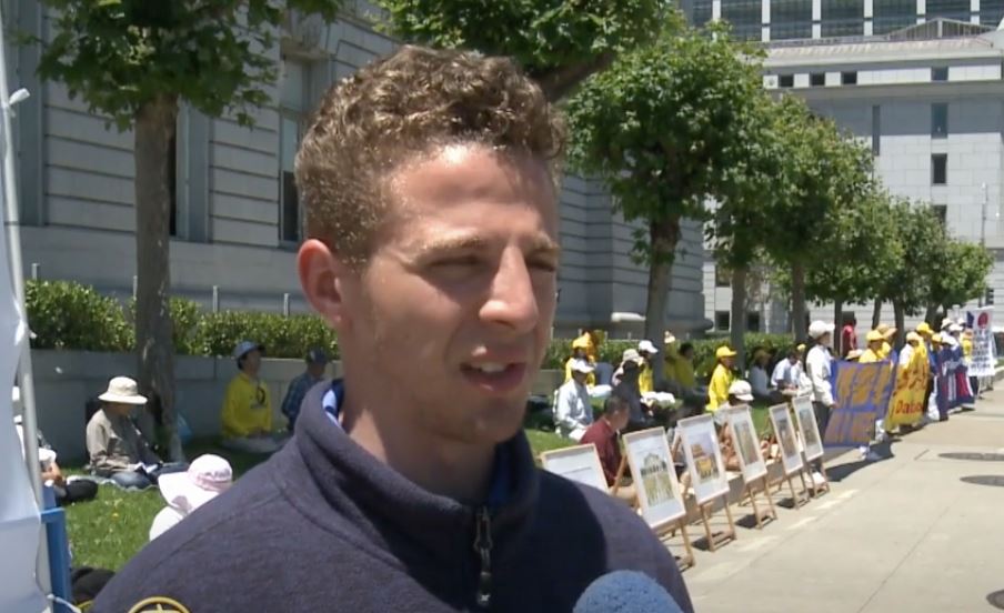 教师泽维尔·麦杜高(Xavier McDougald)在旧金山市府大楼前看到酷刑场面感到很震惊。对于中国法轮功学员遵循“真、善、忍”的原则修炼却遭到迫害,他说:“我想,他们(中共)反对人们成为更好的人。”