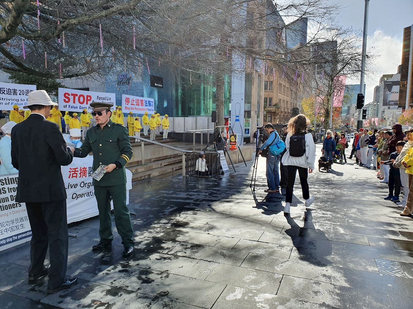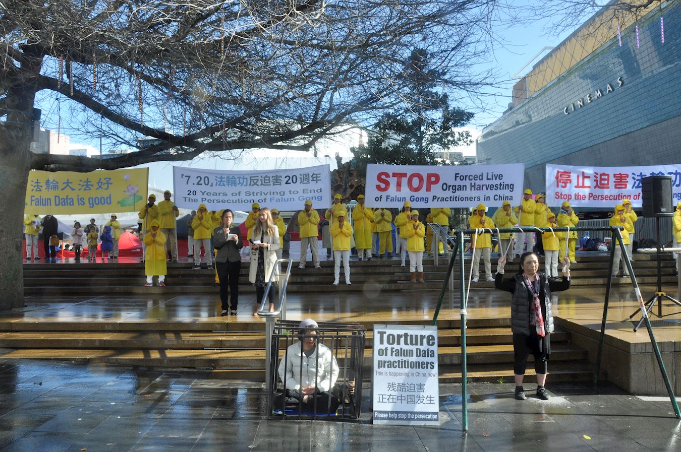 二十年来,中共的酷刑大规模发生在法轮功学员身上。威尔森指着集会现场的酷刑模拟演示说,中共官员曾试图让新西兰政府阻止这些展示,“但我们告诉政府,这个国家有言论的自由、有抗议的自由、有表达自己的自由。这些展示真正表达了正在发生的事情,而且还在持续。”他说,“我感谢法轮功学员,是你们的意志揭穿了活摘器官的黑幕”。