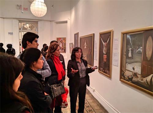其中帕朗果(Barranco)区八所学校的三百八十名学生在老师的带领下,聆听讲解员对每一幅画作的解说,对法轮功修炼者在中国大陆遭到的迫害有了深入了解。