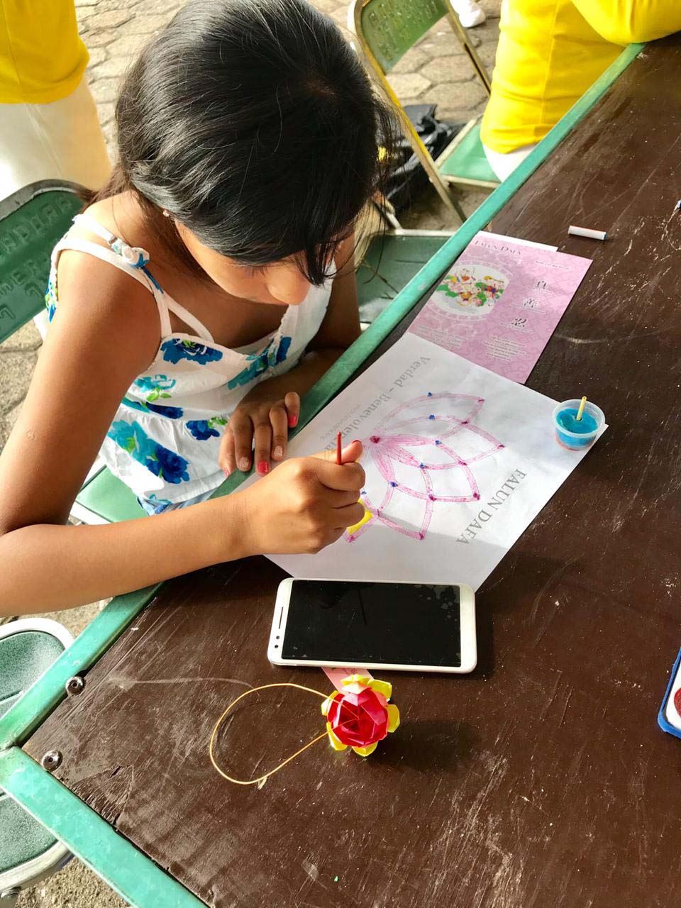 图14:两个小女孩迷上了学画莲花