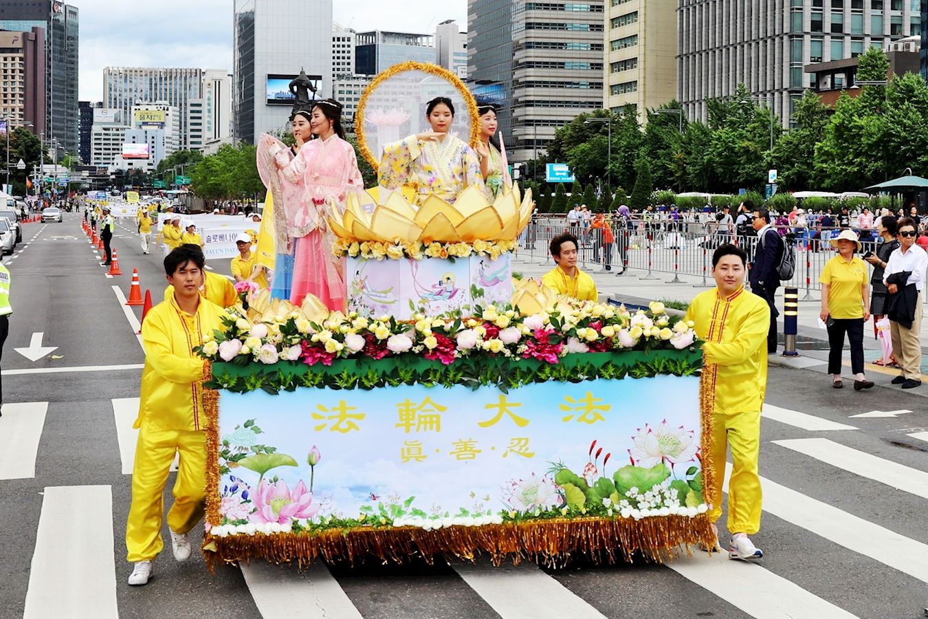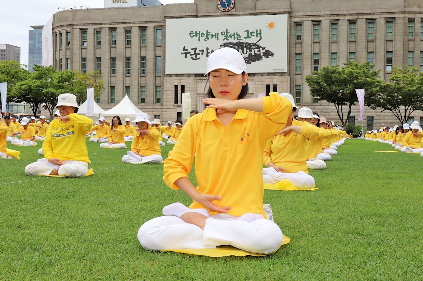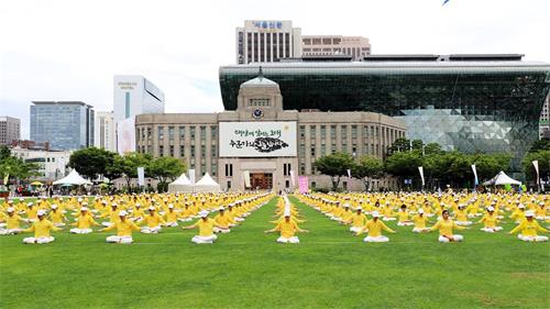 当天,因天气预报报有台风会通过韩半岛,首尔地区将有下大雨,因此原本预定在首尔广场及周围举办活动的其他团体都紧急取消活动,而法轮功活动如期举行。新奇的是,从早晨开始下起的大雨,等法轮功活动开始后,随即停止。活动期间,天空中时时飘起细细的雨丝,洒落在法轮功学员们身上,为他们带来阵阵清凉。