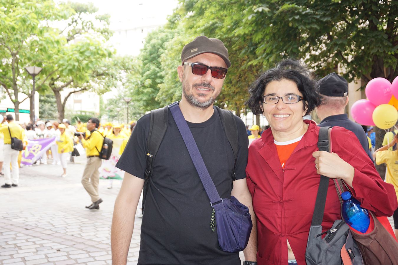 ![]() 图1:媒体人菲奥(Agnès de Féo)女士和丈夫感受到法轮功的美好,支持反迫害。 |