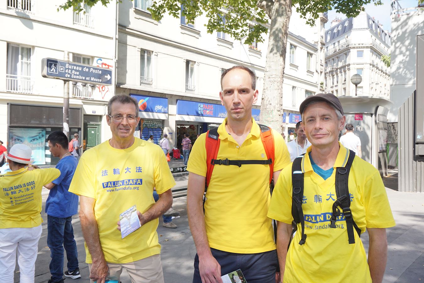 来自南特市的园林师塞巴斯蒂安(Sébastien Artaud)修炼法轮功仅有两年时间。他说:“每次和小组同修读法时,都会感受到整个人已经超越了身体所在的空间。炼功后不久就发现,以前工作时经常感到很疲劳,现在每天早上起得很早,一天都不累,同事们也都发现了这一点。