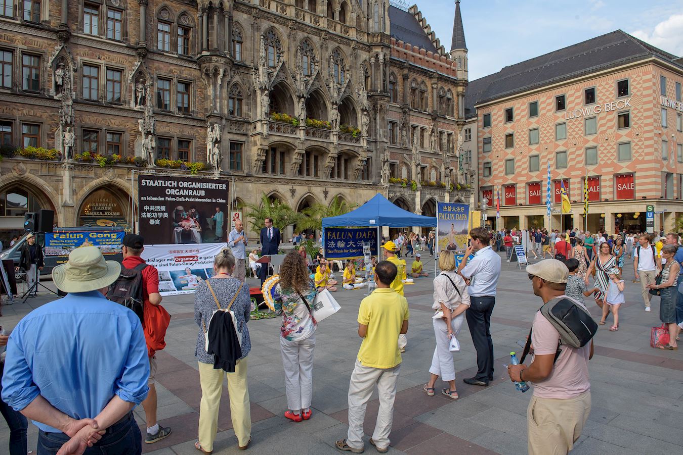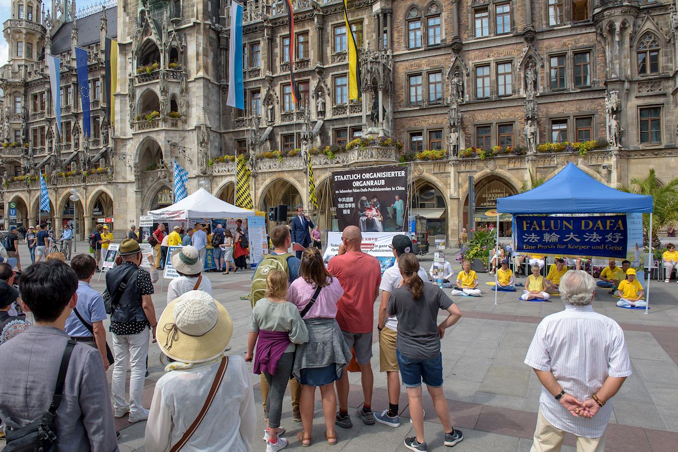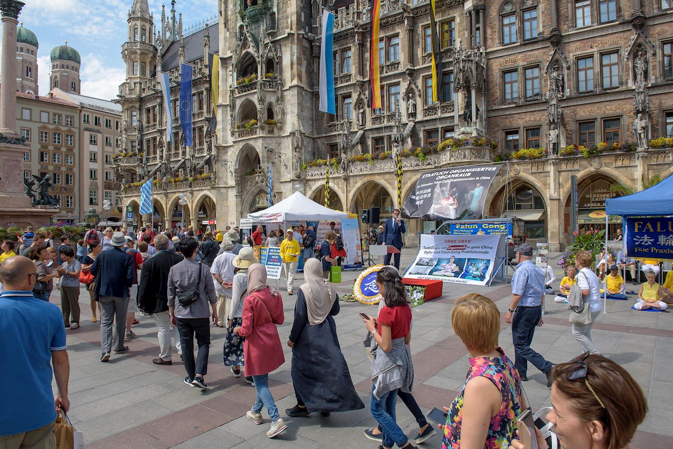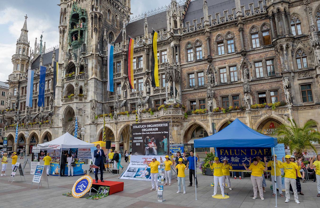 二零一九年七月十九日和二十日,来自慕尼黑及周边城市的部份法轮功学员分别在慕尼黑玛琳广场和慕尼黑中领馆前举办了反迫害二十周年的活动,揭露中共对法轮功长达二十年的迫害、活体摘取法轮功学员器官的罪恶,并告诉民众法轮功是什么,为什么中共要迫害法轮功,呼吁共同制止中共的迫害。