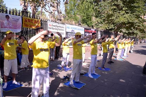 '图1~5:在中国城集体炼功并讲真相'