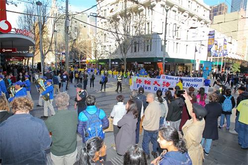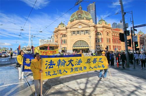 '图1~15:二零一九年七月二十日,澳洲墨尔本部份法轮功学员在市中心举行反迫害二十周年大游行。'