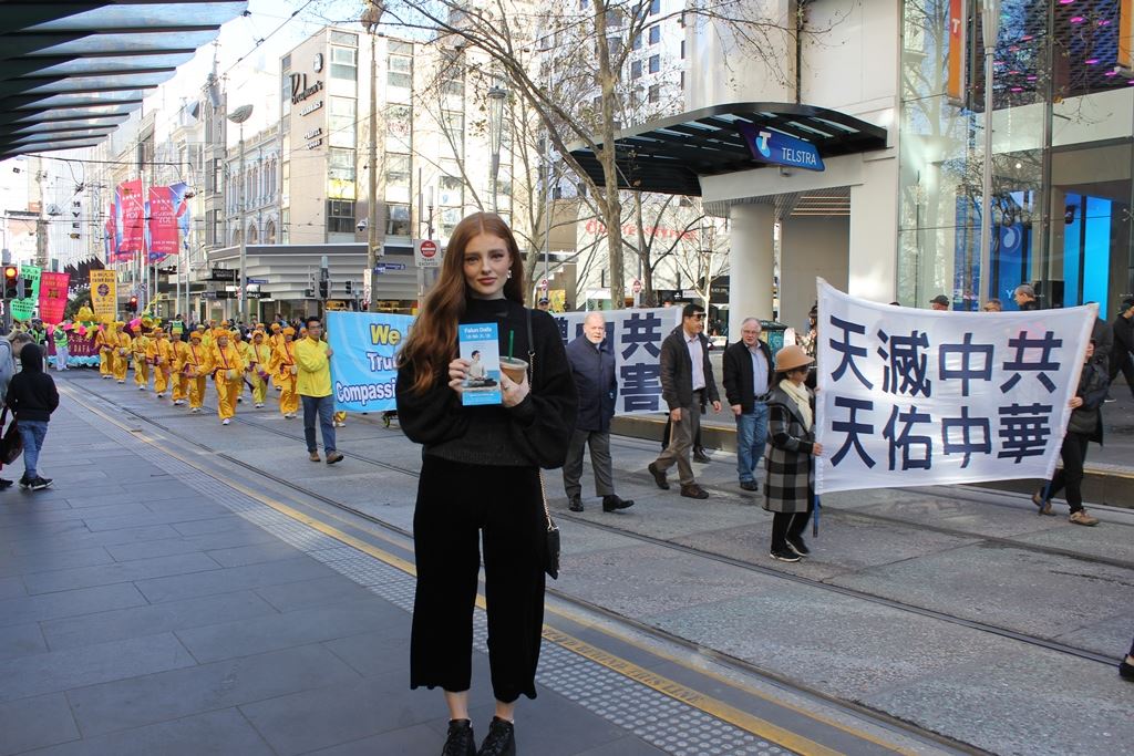 莱维特(Madison Levett)是一位化妆师,她也认为美丽和平的游行队伍让她内心震撼、感动不已。“我几乎把整个游行都拍下来了,会和身边所有人分享。”她说,“对好人的迫害应该立即停止,我们的政府应该帮助制止迫害,不能只为了赚钱,每个人都应该做些什么。”