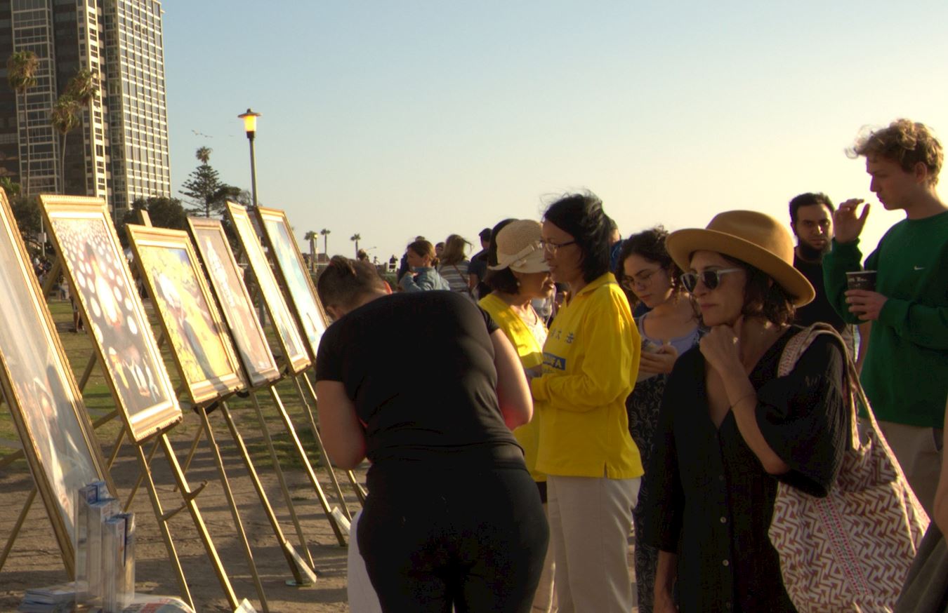 在美国生活了七年的华人毛女士与家人主动向法轮功学员要了真相资料,在加州大学圣地亚哥分校念书的三位中国留学生一边读着关于中共强摘法轮功学员器官的资料,一边与法轮功学员交谈,他们都表示,以前听的是共产党的宣传,现在想从不同的角度了解一下(法轮功)。